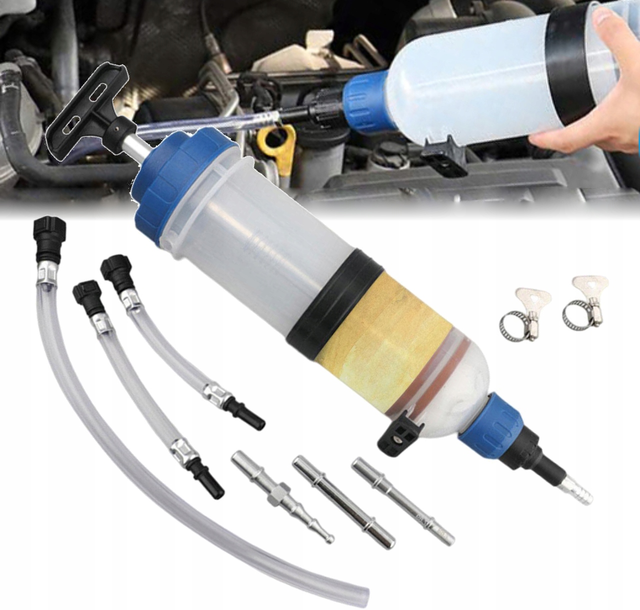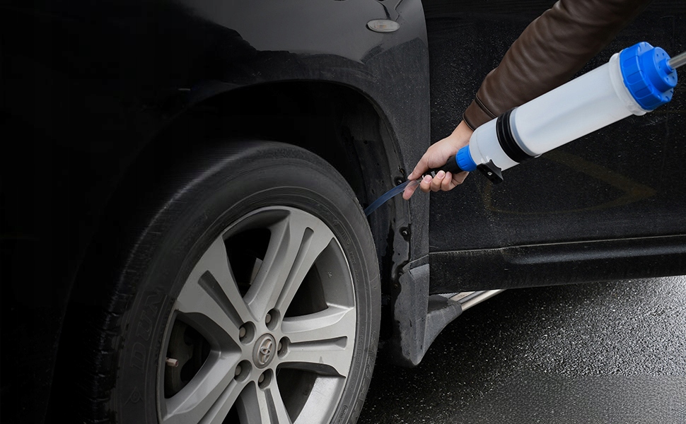 Шприц для заправки жидкости очень подходит для слива или заполнения главного цилиндра и других топливных баков, для забора тормозной жидкости из бака и последующего добавления нового масла перед промывкой тормозной жидкости в тормозном суппорте, для гидроусилителя руля, охлаждающей жидкости.