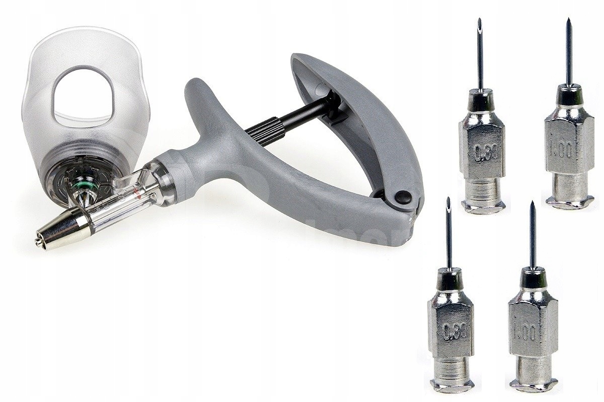 Шприц и иглы многоразового использования. Изготовлен из современного пластика – прочного и чрезвычайно прочного. Вакцинация автоматическим шприцем очень эффективна и беспроблемна.