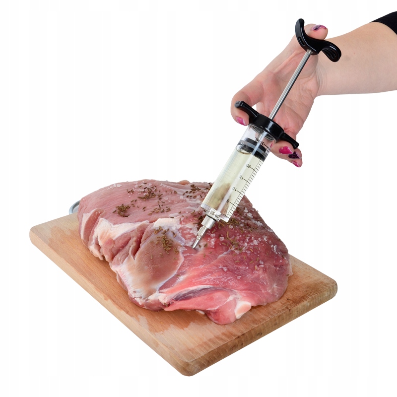 Шприц для маринования и инъецирования мяса – очень практичный кухонный гаджет. Это полезно, когда мы хотим придать мясу аромат и сочность, используя соответствующий маринад. Он будет полезен при запекании различных видов мяса или приготовлении домашнего мясного ассорти. Изготовлен из материалов, безопасных для здоровья и пищевых нейтральных. Оригинальный продукт чешского бренда Orion. Игла изготовлена из пластика и нержавеющей стали и имеет большие боковые отверстия.