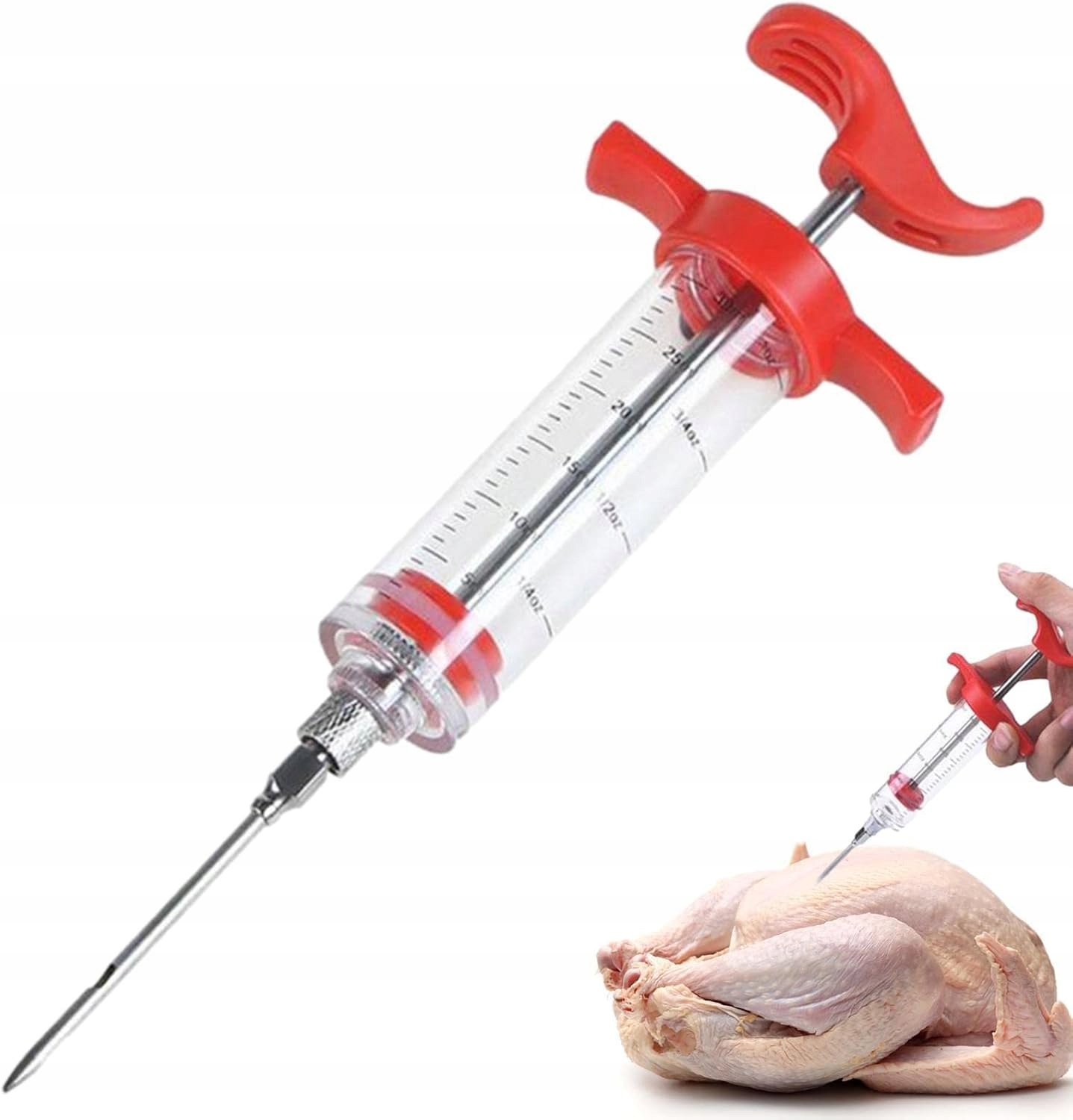 Шприц для инъекции маринада позволяет легко вводить специи и соусы глубоко в мясо. Идеально подходит для индейки, курицы, стейков, говядины, свинины и других блюд!