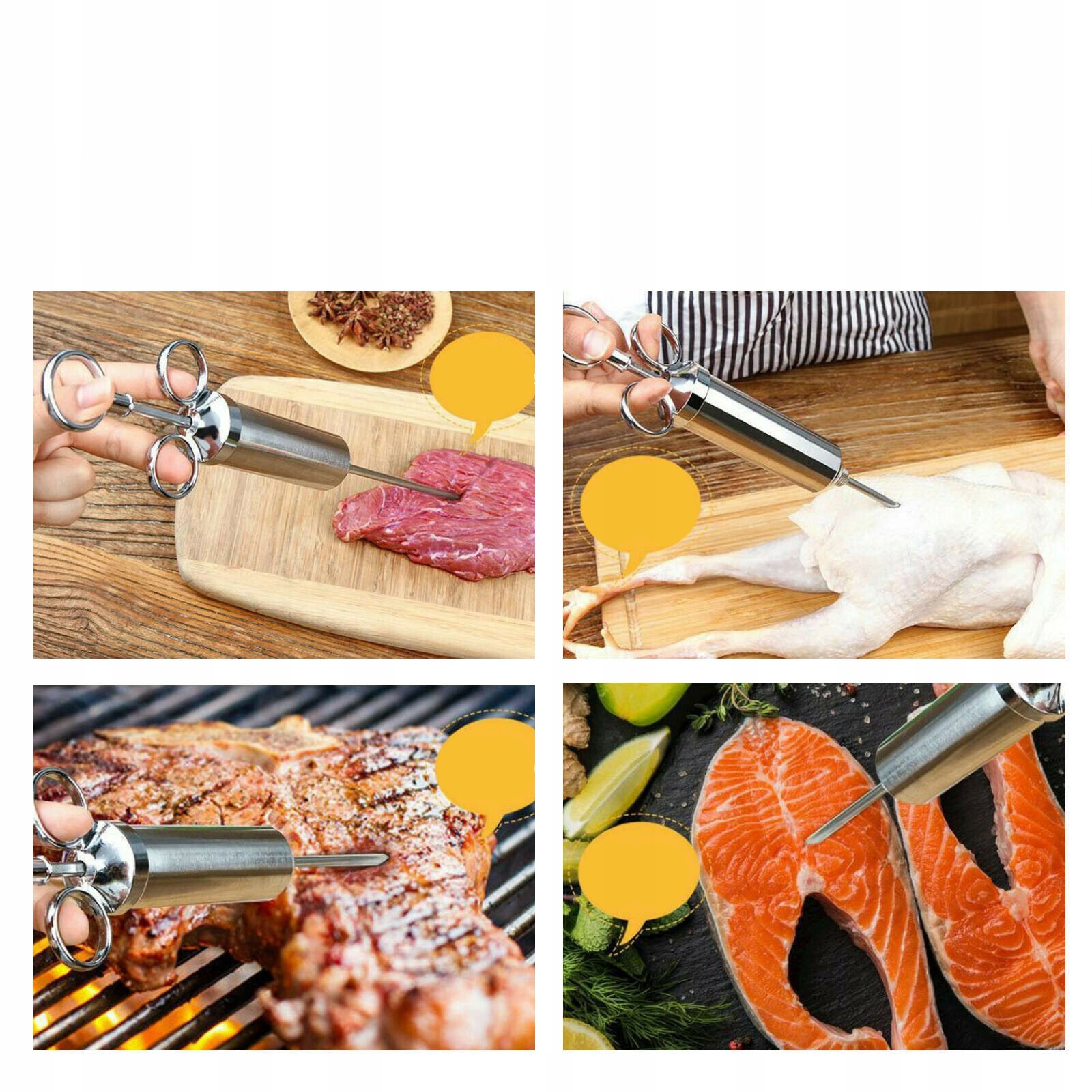 304 Шприц из нержавеющей стали - это удобный кухонный инструмент, который позволяет легко вводить жидкие соусы или ароматизированное масло непосредственно к мясу, придавая блюду удивительный вкус, а каждый укус является острым и сочным. Подходит для приготовления индейки, говядины, свинины, рыбы и других ингредиентов.