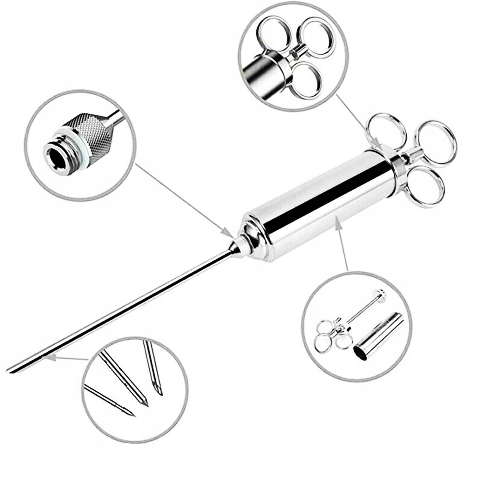 【Устойчивая к ржавчине, коррозии, воздухонепроводному материалу, изготовленному из 304 из нержавеющей стали/цинкового сплава, высокой прочности, инъекции ингредиентов при высокой температуре, не дает вредных веществ, прочных, устойчивых к коррозии и будет служить в течение многих лет без ржавчины. Сплошные иглы легко прилипают к любому типу мяса и запечатаны без утечек.