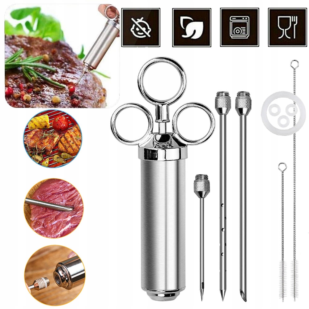 👍👍👍【Маринованное мясо】 Подходит для свинины, говядины, курицы, птицы, морепродуктов и т. д. Емкость шприца для маринования - 60мл. Используя шприц для маринада, вы также можете впрыскивать жидкое сливочное масло, ароматизированные масла или измельченные травы непосредственно в мясо.