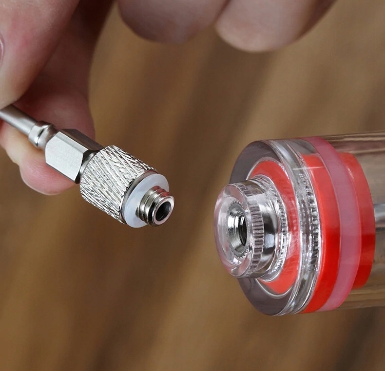 В набор входят две иглы. и очиститель.для игл и запасных силиконовых уплотнителей.