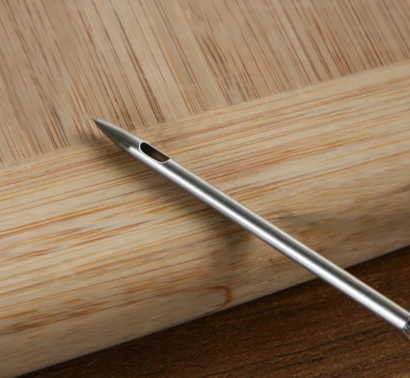 ✅Игла с отверстием на конце изготовлена из нержавеющей стали, что гарантирует безопасное использование при контакте с пищевыми продуктами. Игла пригодится для точечных инъекций, когда мы хотим достичь определенного места маринадом.