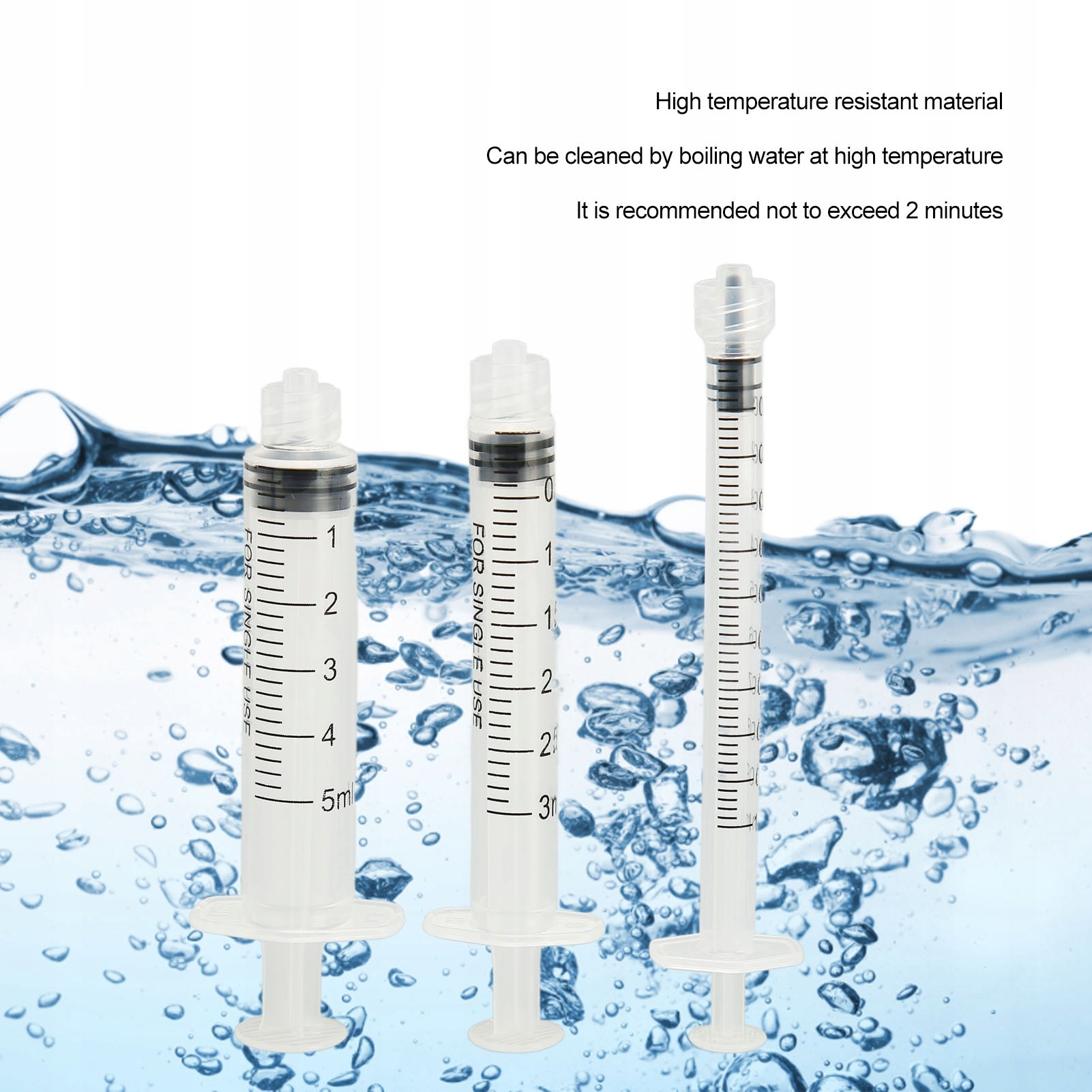 6. Легко чистить: шприц для кормления изготовлен из материала, устойчивого к высоким температурам, и его можно мыть кипящей водой при высокой температуре, рекомендуется не более 2 минут.