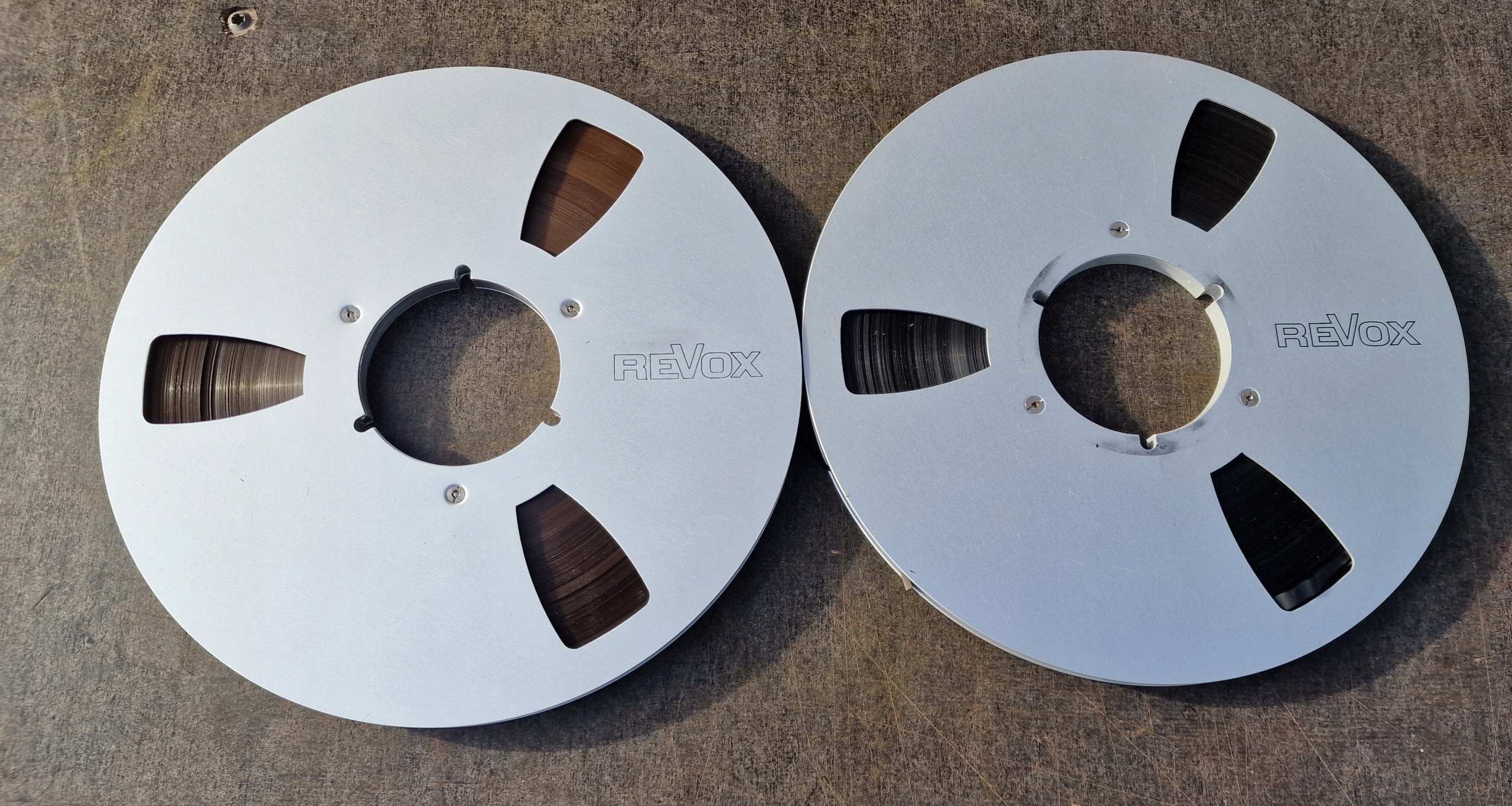 2 катушки REVOX, оптическое состояние соответствует фотографиям, в заявке указано как поврежденное — лента не проверялась.