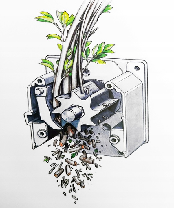 Электрический измельчитель мощностью2800Вт оснащен фрезерно-режущим механизмом, который позволяет легко измельчать ветки, жесткие побеги, ветки живых изгородей, кустов, и т. д.