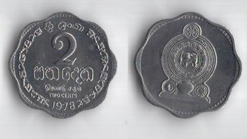 ШРИ-ЛАНКА 2 ЦЕНТА 1978 ГОДА