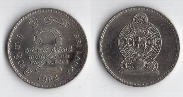 ШРИ-ЛАНКА 1984 ГОДА 2 РУПИИ НЕМАГНИТНЫЕ