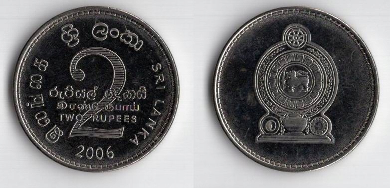 ШРИ-ЛАНКА 2006 2 РУПИИ МАГНИТНАЯ НИКЕЛИРОВАННАЯ СТАЛЬ