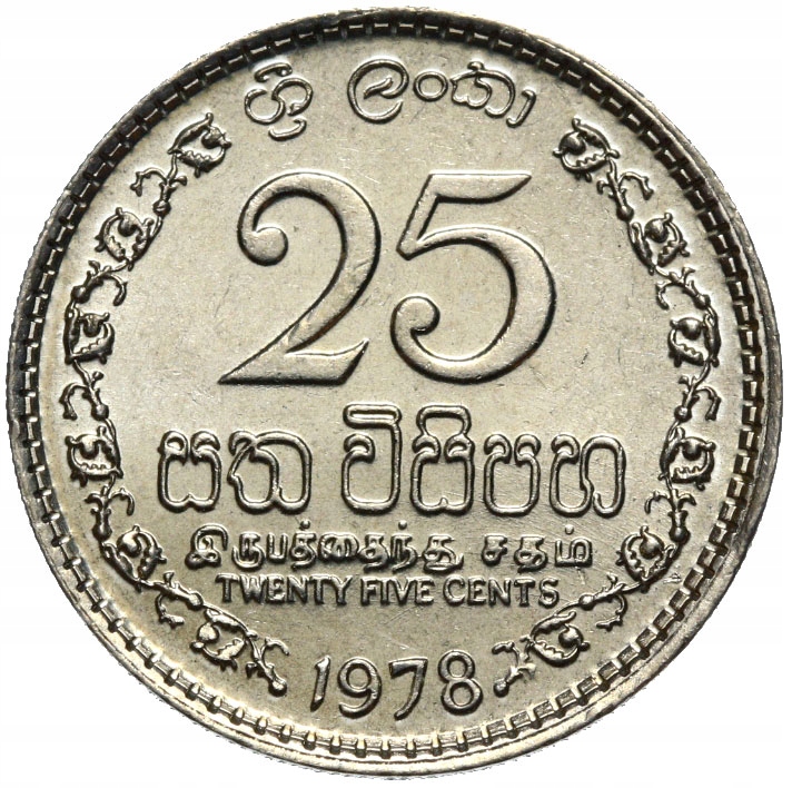 Шри-Ланка — Цейлон — 25 центов 1978 года — Состояние UNC — В отличном состоянии (UNC).