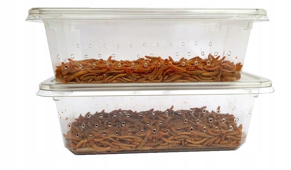Контейнер, в котором мы отправляем насекомых, является транспортной тарой и не пригоден для разведения и длительного хранения насекомых. Личинки мучного червя – одни из самых популярных и универсальных пищевых насекомых. Предлагаемые нами личинки крупные, но еще не достигли максимального размера, поэтому при содержании в комнатной температуре они не сразу начнут окукливаться. Личинки лучше всего хранить в плоской, хорошо вентилируемой таре. В качестве еды рекомендуем наши специализированные смеси или отруби, а также свежие фрукты и овощи (тыква, яблоко, картофель, морковь, свекла). Влажный корм следует давать один раз в 2-3 дня в таком количестве, чтобы не оставалось остатков для следующего кормления. Личинки, которые мы продаем, отделяются машинным способом, поэтому вы платите за чистых насекомых, без остатков пищи и т. д.