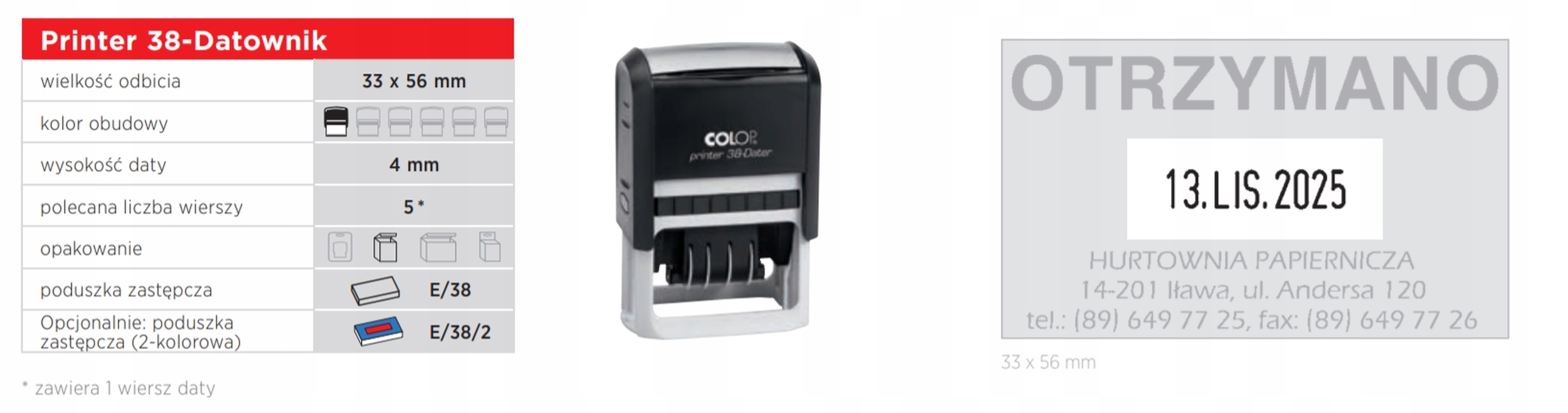 Принтер 38 представляет собой прямоугольный штамп даты с текстовой пластиной, изготовленный из высококачественных материалов. Совершенный дизайн и обтекаемая форма гарантируют комфортное использование штампа.