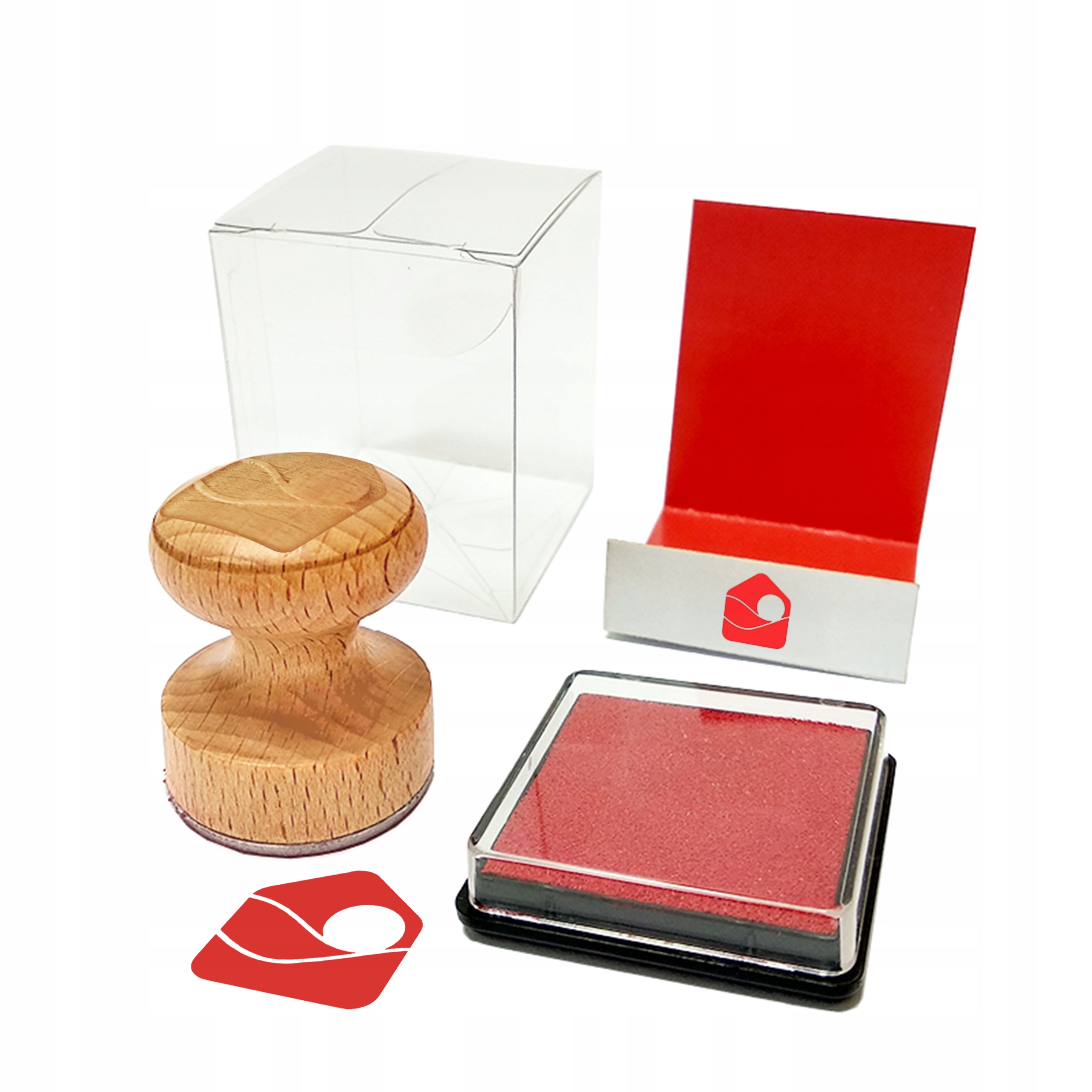Деревянная марка, штамп в коробке с логотипом - Рекламный набор «Штамп в коробке», красный