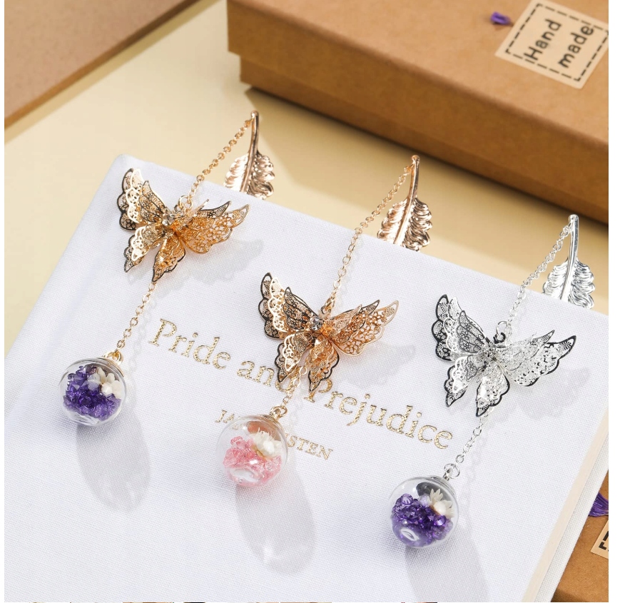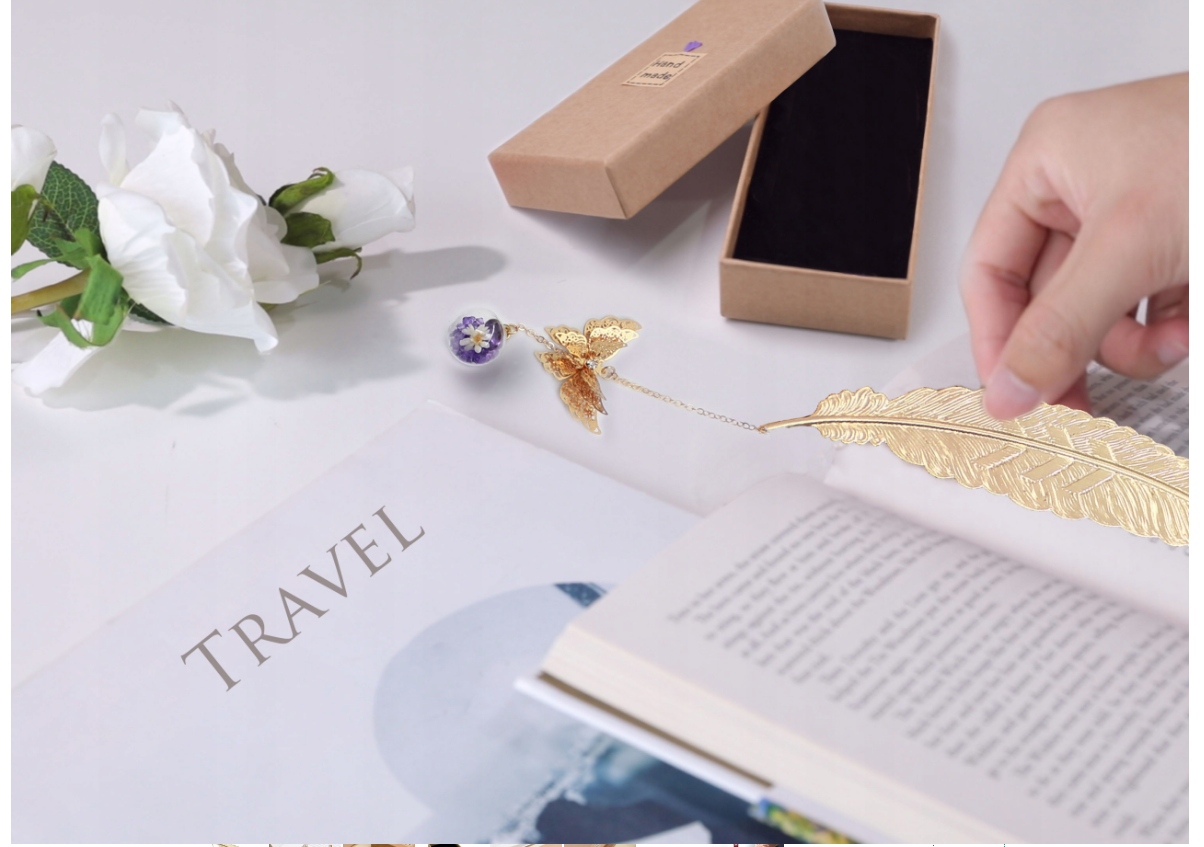 Каждая вкладка тщательно сделана вручную, а естественный цветок с 3D -подвеской для бабочек сочетает в себе природные художественные творения со стилем ретро -перьев, благодаря которого читатели расслаблены и счастливы. другие