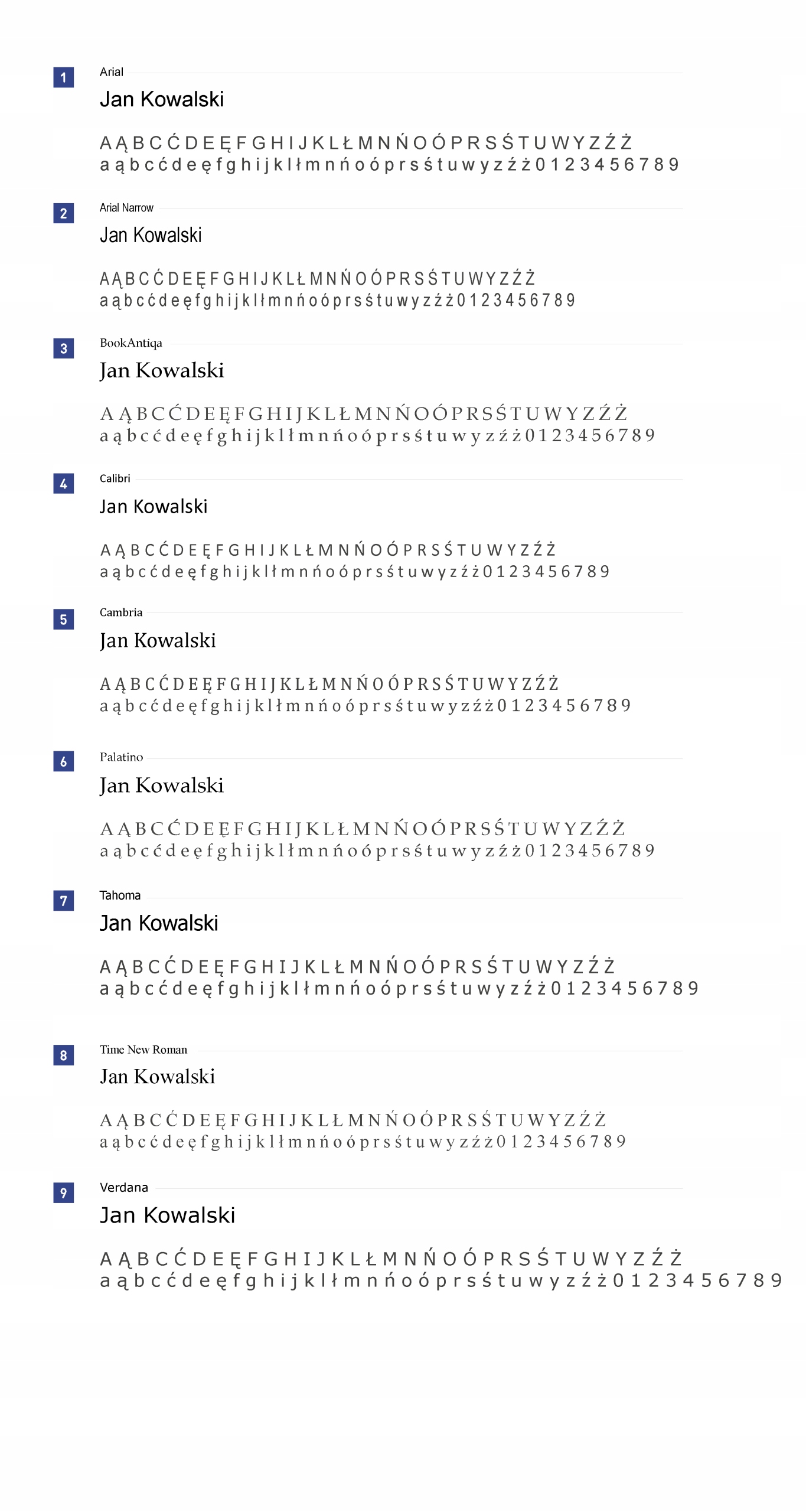 II. тип шрифта, выбранный из шаблона,