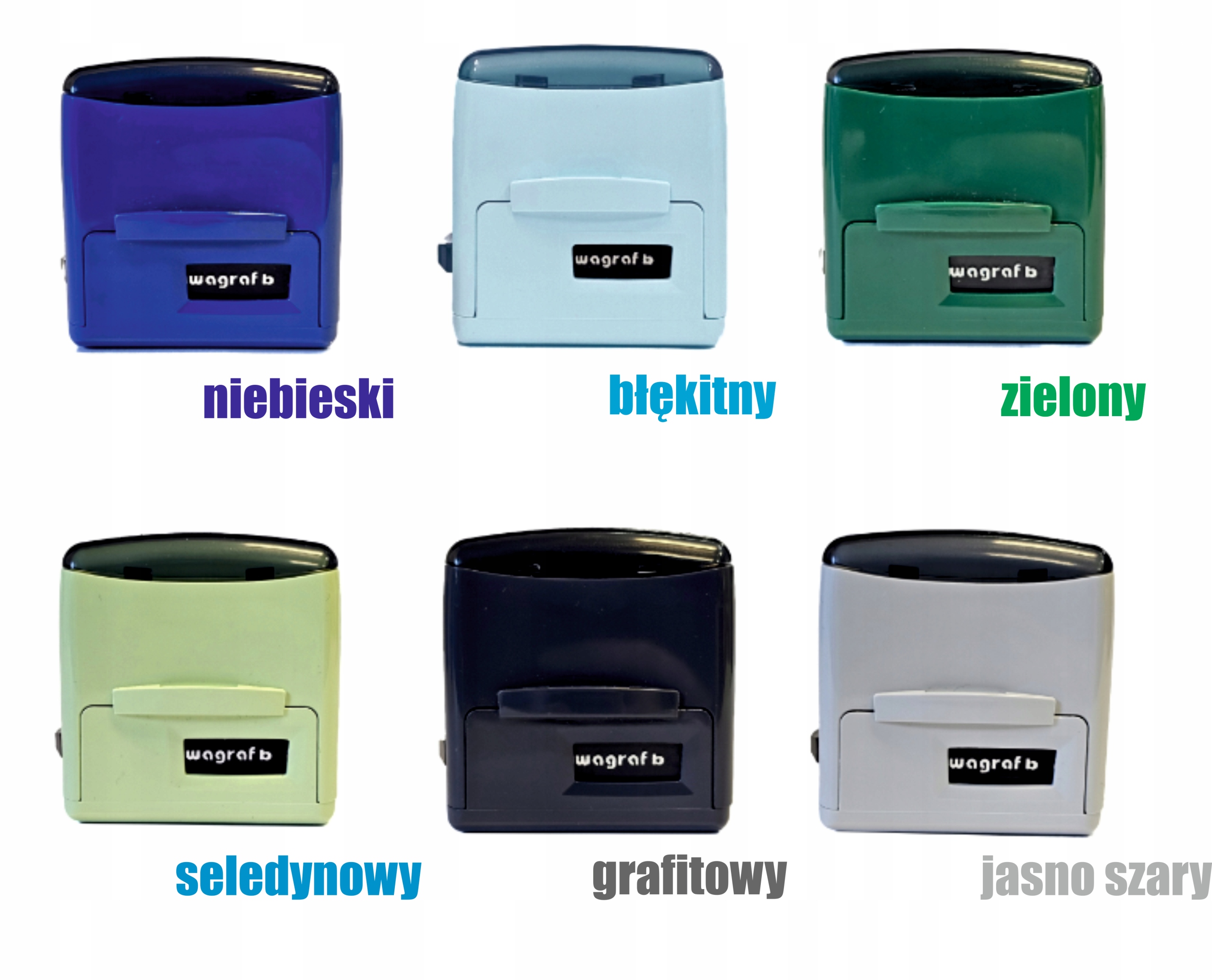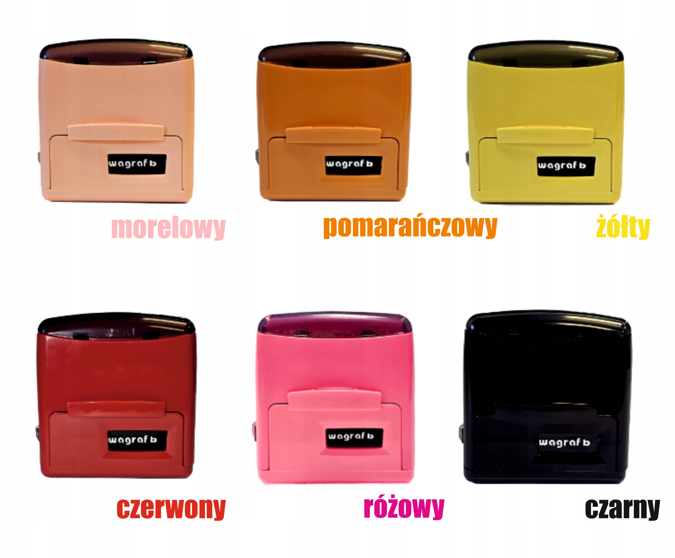 Штамп Wagraf B3s на 6 строк текста, 12 цветов корпуса + набор чернил