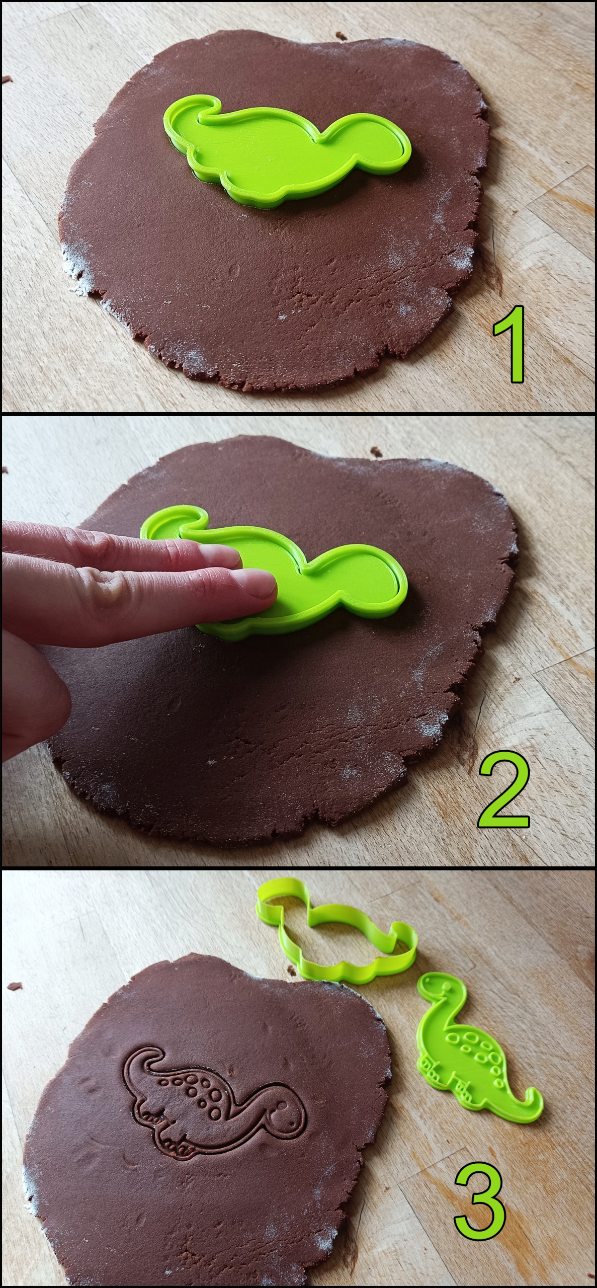 Чтобы облегчить задачу, рекомендуем перед каждым нажатием обмакивать форму в муку или посыпать ею смесь.