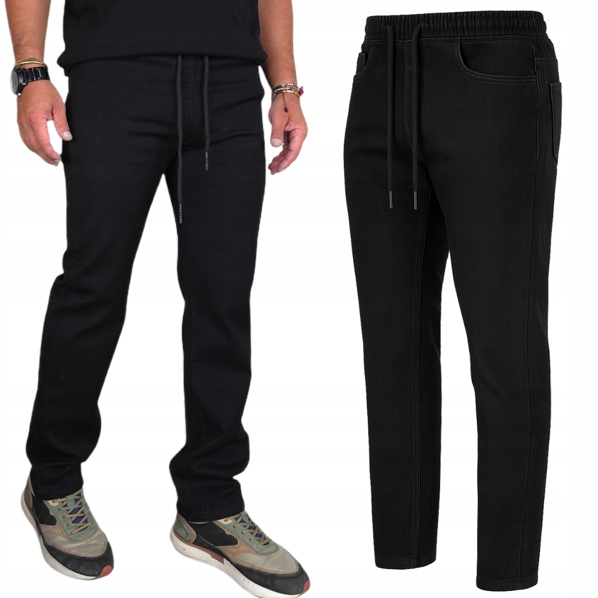 ШТАНИ ЧОЛОВІЧІ ДЖИНСОВІ довгі ЧОРНІ ПРЯМІ натяжні ПОЯС З ГУМКОЮ р.
