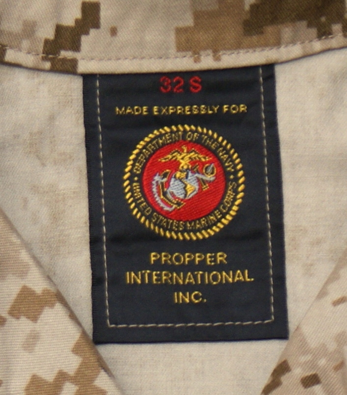 - Эмблема морской пехоты США на левой груди.