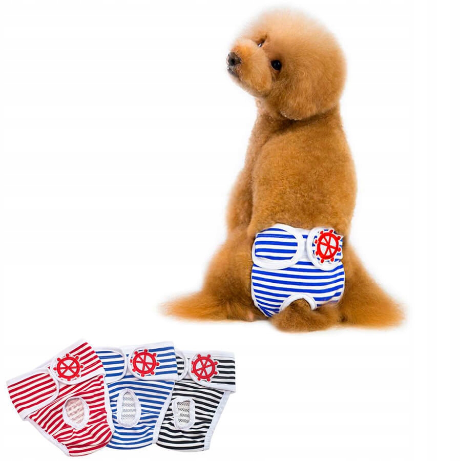 Трусики Sailor регулируются с помощью липучки, что позволяет регулировать и адаптировать их под собаку. Они доступны в двух цветах -красном и синем, 5 размерах от S до XXL -для самых маленьких и больших собак.