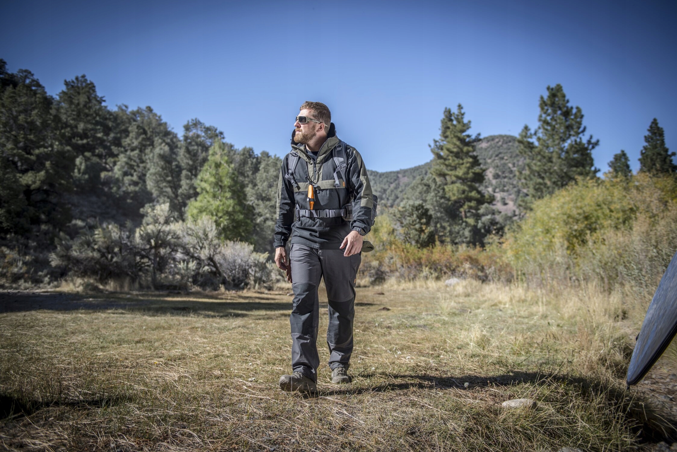 Пилигрим — брюки из чрезвычайно прочной и в то же время легкой ткани DuraCanvas®. Задняя часть брюк слегка приподнята, что обеспечивает защиту области почек. Для дополнительного комфорта в кокетку брюк вшит тонкий поролон.