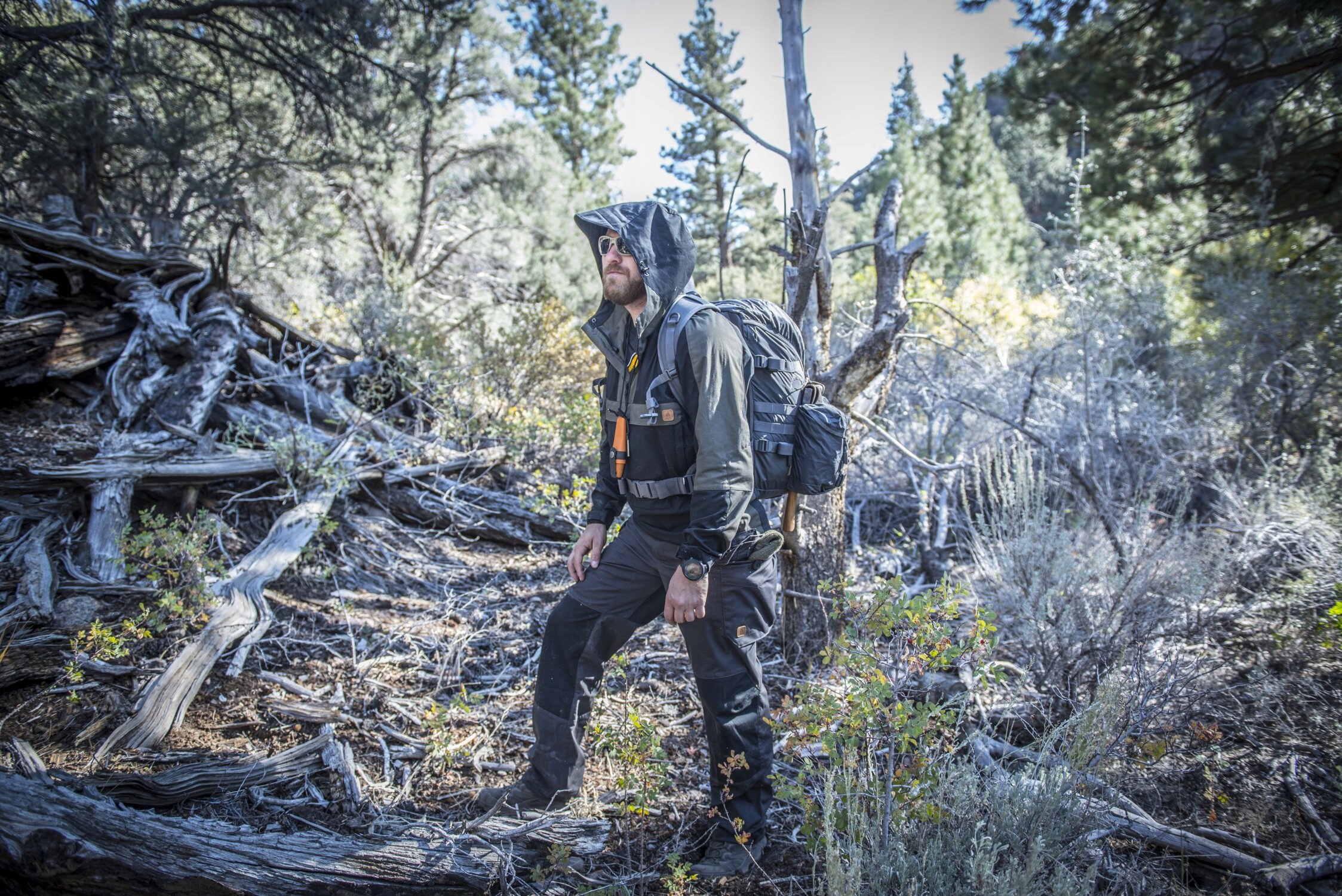 Всего на брюках восемь карманов. Большие набедренные карманы на пуговицах отделаны сеткой для улучшения циркуляции воздуха, когда карманы открыты. Классические набедренные карманы имеют усиленные края, защищающие их от быстрого износа зажимами для ножей. Между грузовым и набедренными карманами имеются дополнительные карманы на молнии. На задней части брюк имеются карманы на пуговицах с усиленными краями.