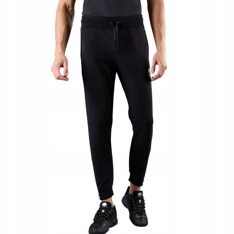 Брюки обычного кроя, предназначенные как для интенсивной эксплуатации, так и для повседневного использования. Мягкий и легкий материал отлично отводит пот. Изготовлен из высококачественного хлопка. Материал мягкий, приятный на ощупь и очень удобный. Широкий эластичный пояс со шнурком для правильной подгонки по форме фигуры. Зауженные штанины с эластичными ребристыми манжетами и молниями для удобства надевания. Два глубоких боковых кармана и один сзади справа. Контрастный логотип Hydrogen на левой штанине.