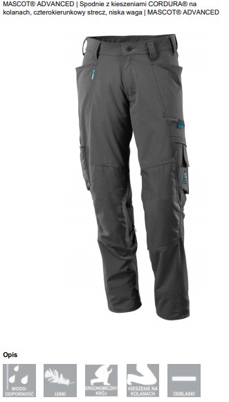 Оплачивая «ШТАНИ РОБОЧІ MASCOT 48 СТРЕЙЧ», вы можете быть уверены, что данный товар из каталога «Брюки» будет доставлен из Польши и проверен на целостность. В цене товара, указанной на сайте, учтена доставка из Польши. Внимание!!! Товары для Евросоюза, согласно законодательству стран Евросоюза, могут отличаться упаковкой или наполнением.