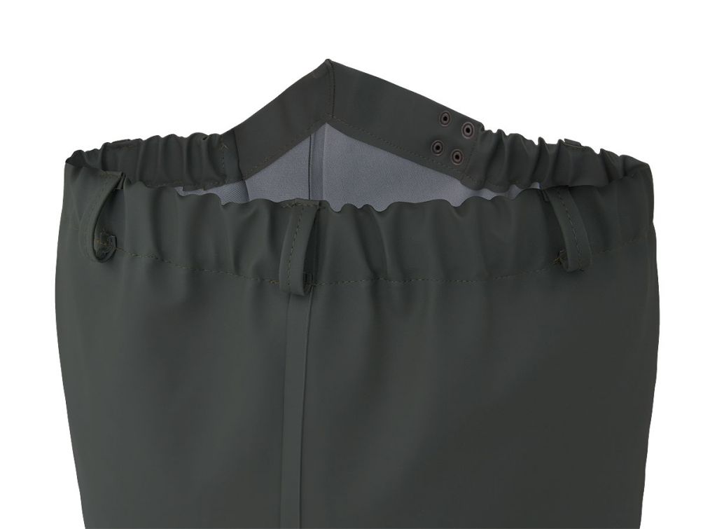 Поясные брюки с постоянными, высококачественными резинками. Модель изготовлена из защищенной от воды, долговечной ткани с тяжелой работой Plavitex. Разработано специально для рыболовов и рыбаков для использования во всех рыболовных работах. Они обеспечивают эффективную защиту от воды. Техника двусторонней сварки увеличивает прочность швов.