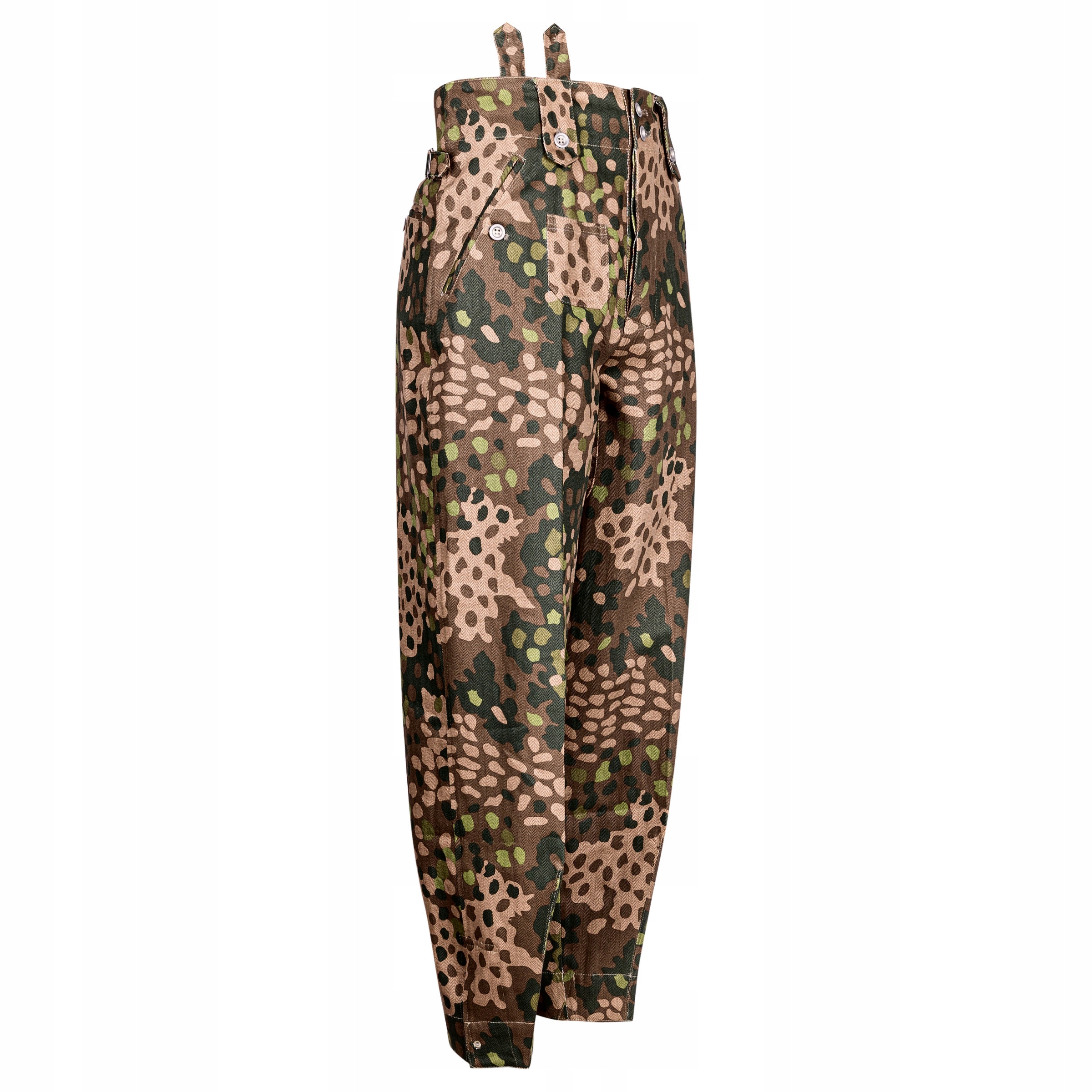 Точная копия гороховых (весенних) камуфляжных брюк СС Эрбсентарна. Определенно одна из лучших реплик на рынке, имеет правильную камуфляжную текстуру (все цвета соответствуют оригиналу, включая два зеленых).