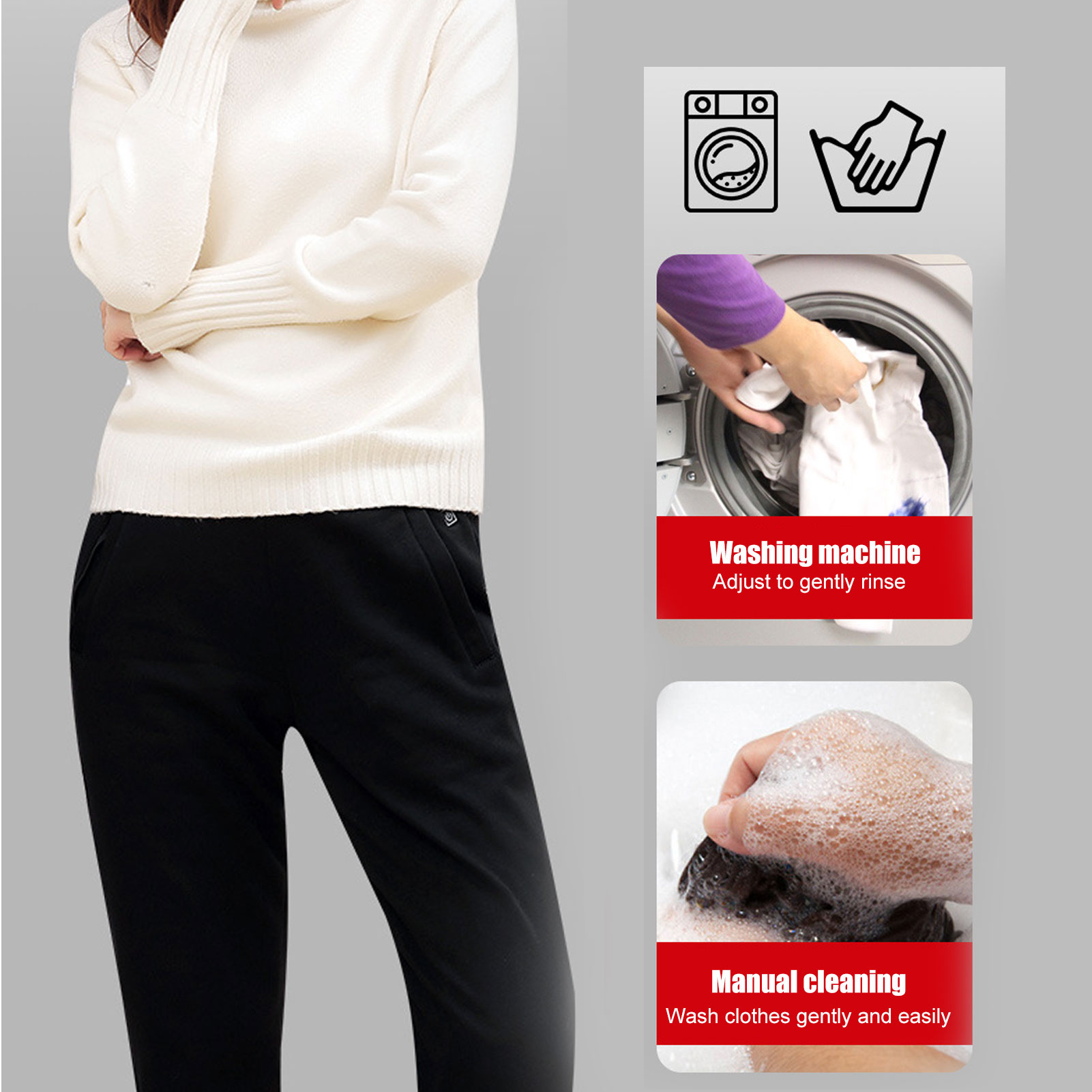 1. Используйте нагревательную проволоку из углеродного волокна, безопасную и долговечную, эластичные штаны, двухслойную противоскользящую конструкцию