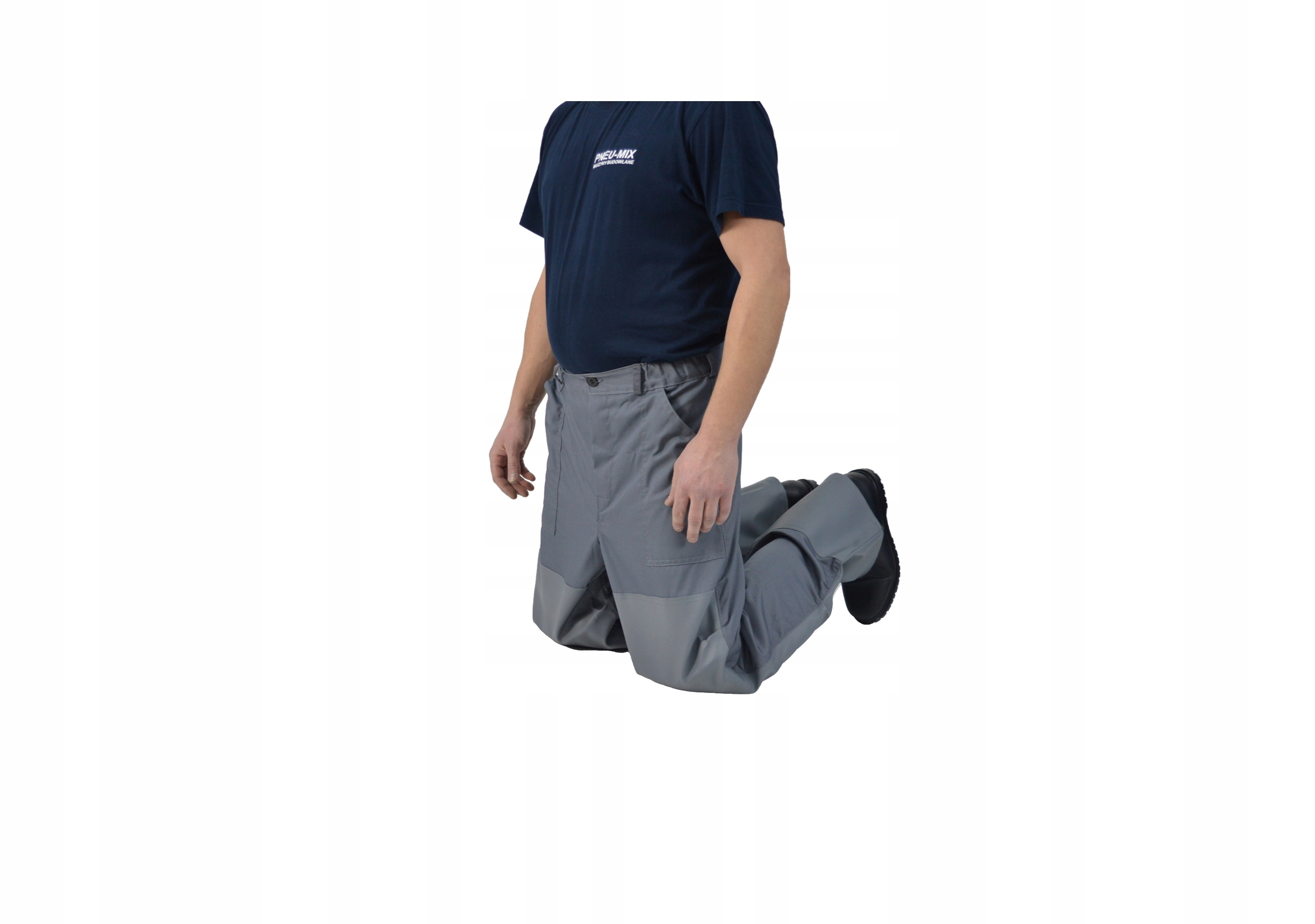 Передняя часть штанин выполнена из плотного водонепроницаемого материала, а с внутренней стороны имеется специальный карман для сменные губки, дополнительно защищающие колени. Нижняя часть ножек отделана водонепроницаемым материалом для предотвращения капиллярного действия цементного раствора.