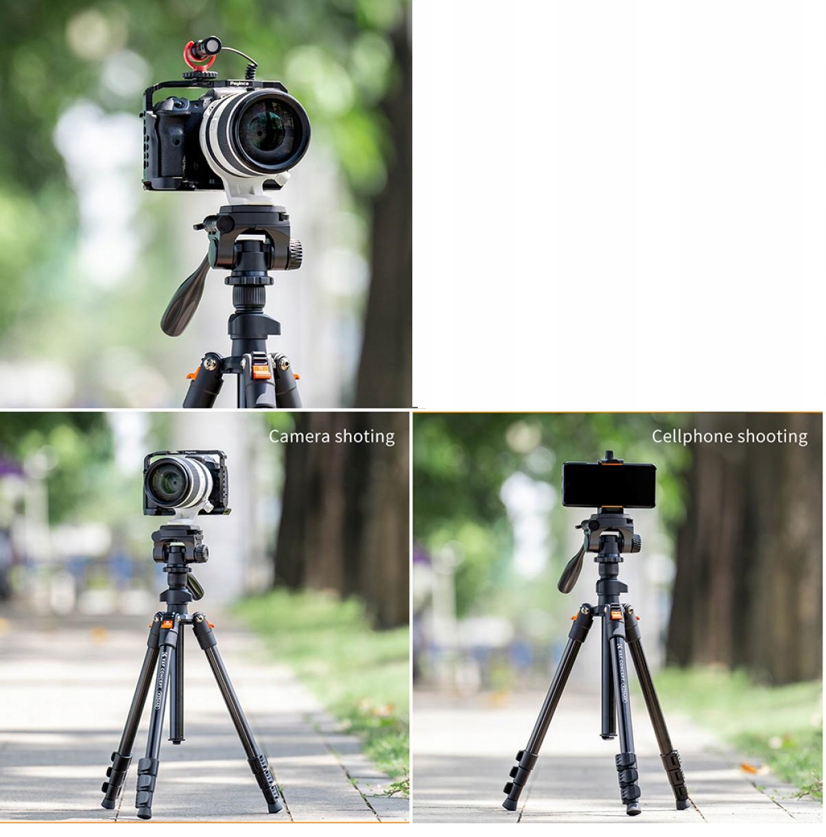 Штатив изготовлен из алюминиевого сплава. Штатив весит всего 1,26 кг, максимальная грузоподъемность — до 3 кг, а классическая резьба 1,4 дюйма позволяет удобно использовать штатив со спортивными фотоаппаратами, зеркальными фотоаппаратами или смартфонами практически в любых условиях и местах.