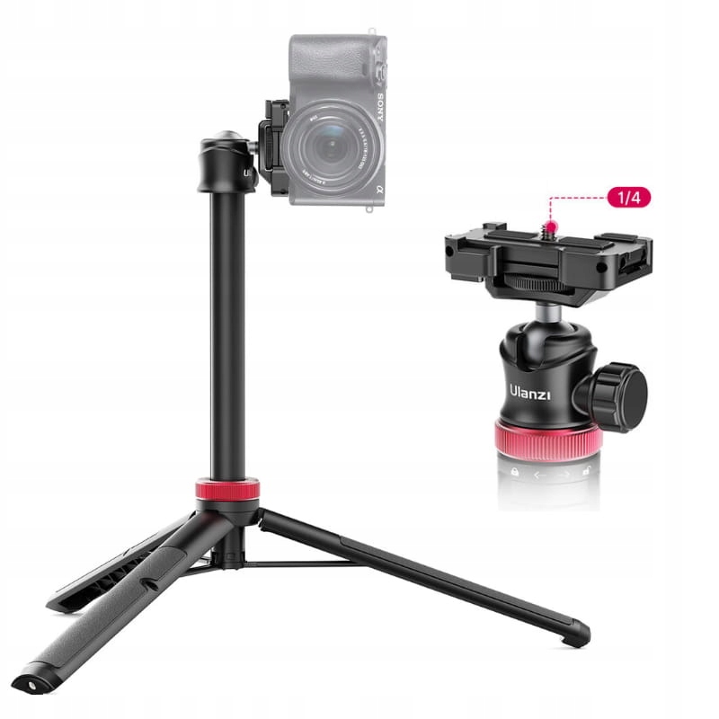 Ulanzi MT-44 — телескопический настольный штатив с шаровой головкой, изготовленный из ABS. Пластину для камеры с резьбой 1/4 дюйма на конце головки можно превратить в зажимной держатель для смартфона за несколько секунд. МТ-44 сочетает в себе функциональность традиционного штатива и выдвижной штанги для селфи с очень большим радиусом действия. Благодаря этому штатив могут с успехом использовать не только фотографы, но и видеоблогеры и интернет-креаторы. Пружинный регулируемый зажим для телефона имеет диапазон от 60 до 80 мм. После превращения головы в держатель для смартфона у нас также есть дополнительное крепление холодный башмак, которое можно использовать при работе с небольшой светодиодной лампой или внешним микрофоном.