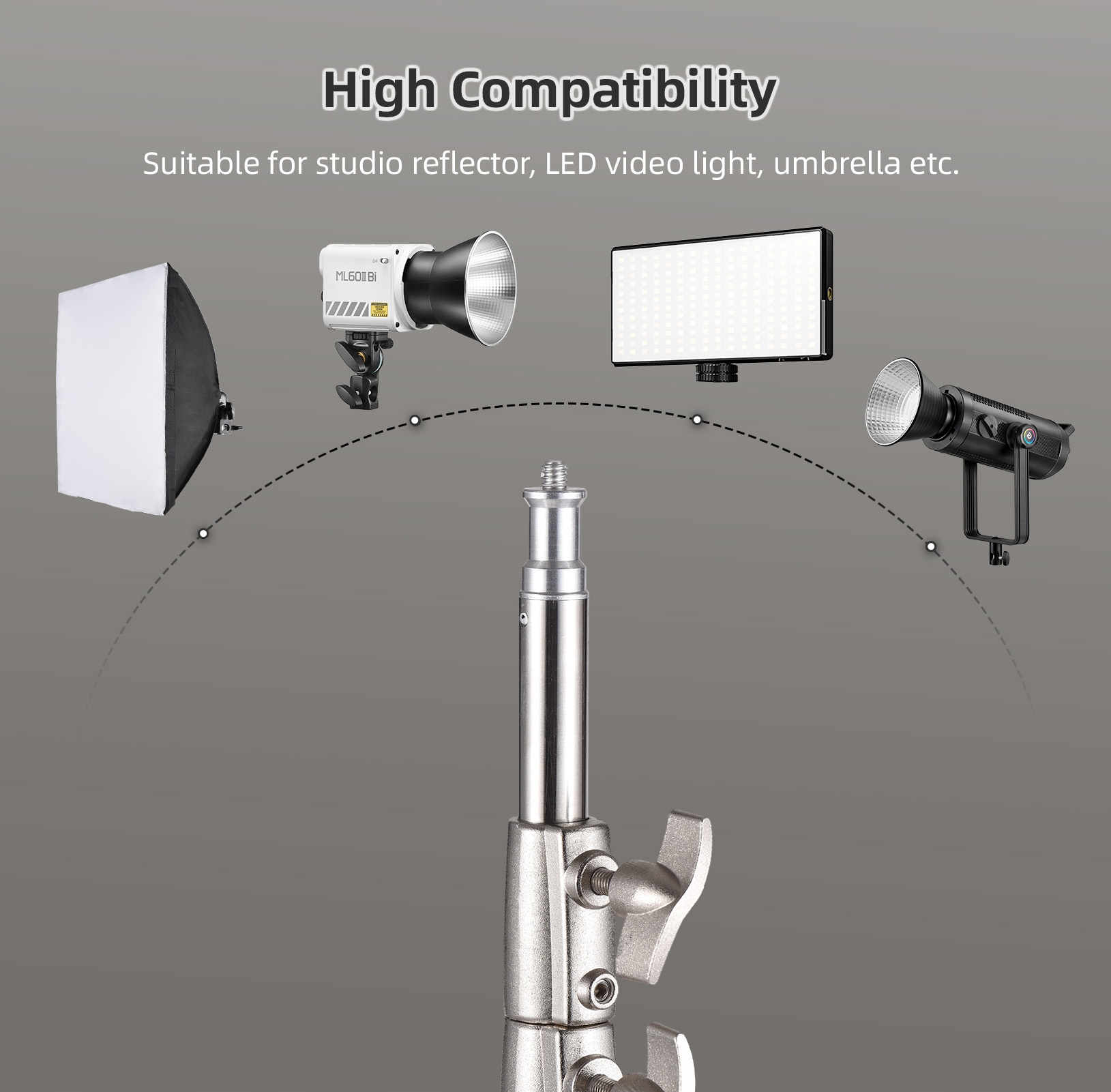 3. Оборудован стандартным креплением мира и винтом 1/4 дюйма, он совместим со светодиодными мирами, кольцевыми мирами, софтбоками и другими фотографическими устройствами.