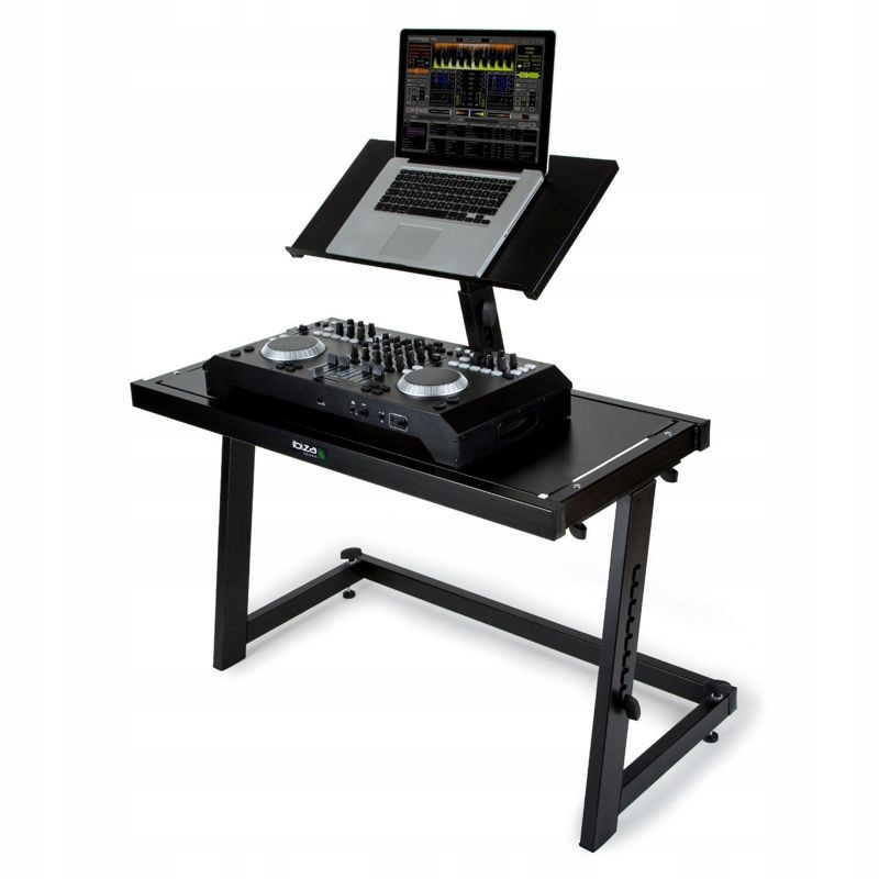 DS20 от Ibiza - это портативный рабочий стол для диджеев с штативом для ноутбука.