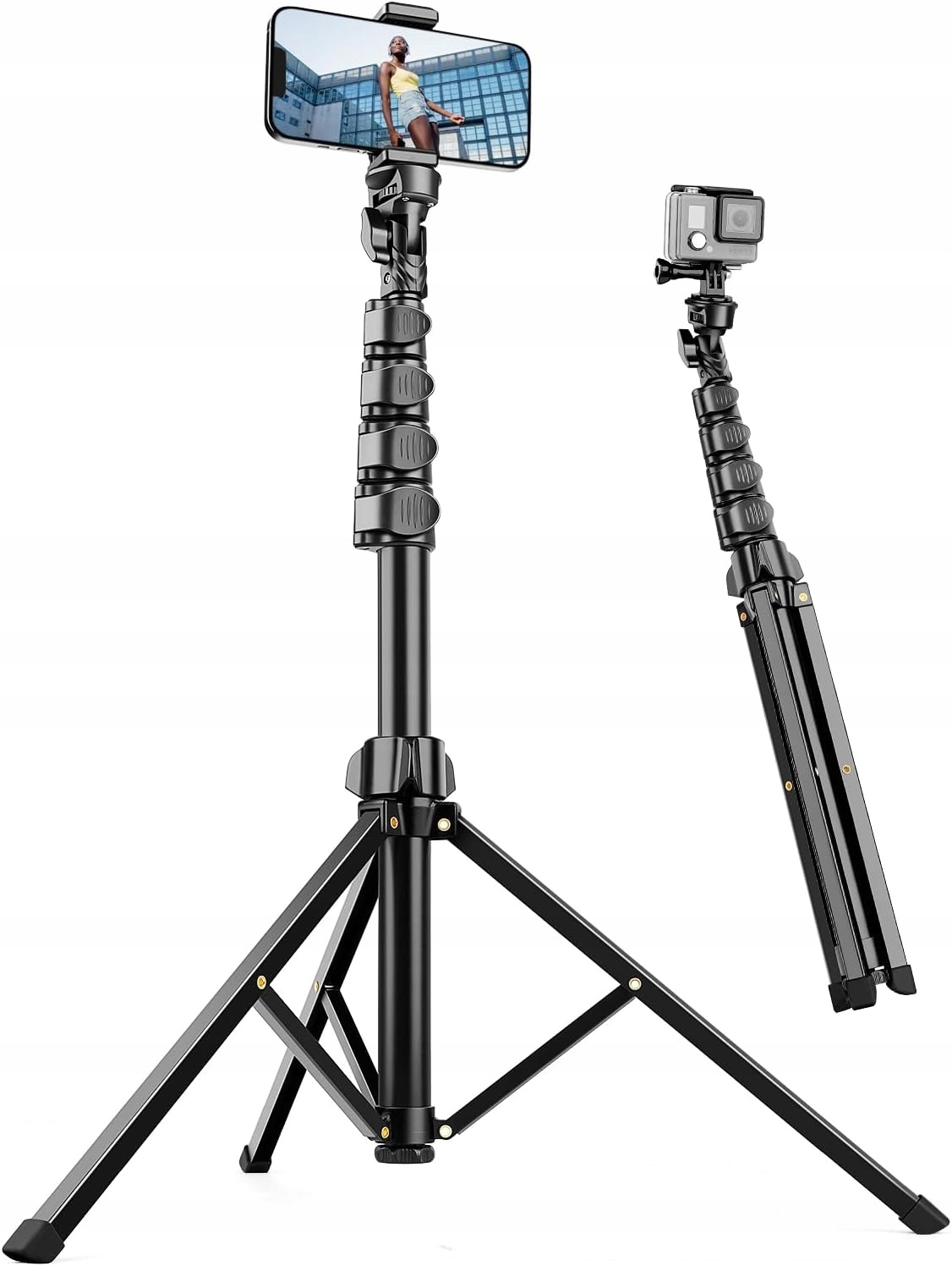 Эту палку для селфи отличает исключительно длинная рукоятка на рынке. В разложенном виде длина палки для селфи составляет 180 см! Вы можете не только делать фотографии с еще большего расстояния, но и использовать его как полноразмерный штатив. Стабильный штатив идеально подходит для съемки фотографий с длительной выдержкой. Более того, если вы хотите снимать вертикально, необходим высокий штатив — вы избежите странного угла записи снизу. Головка телефона крепится на винте 1/4 дюйма, поэтому после ее снятия вы можете установить фотоаппарат или видеокамеру на штатив. Полная стабилизация для ваших фотографий и записей. Штатив изготовлен таким образом, что его можно быстро открутить. и используйте палку как обычную палку для селфи. Положение штатива фиксируется гайкой, что гарантирует устойчивость.