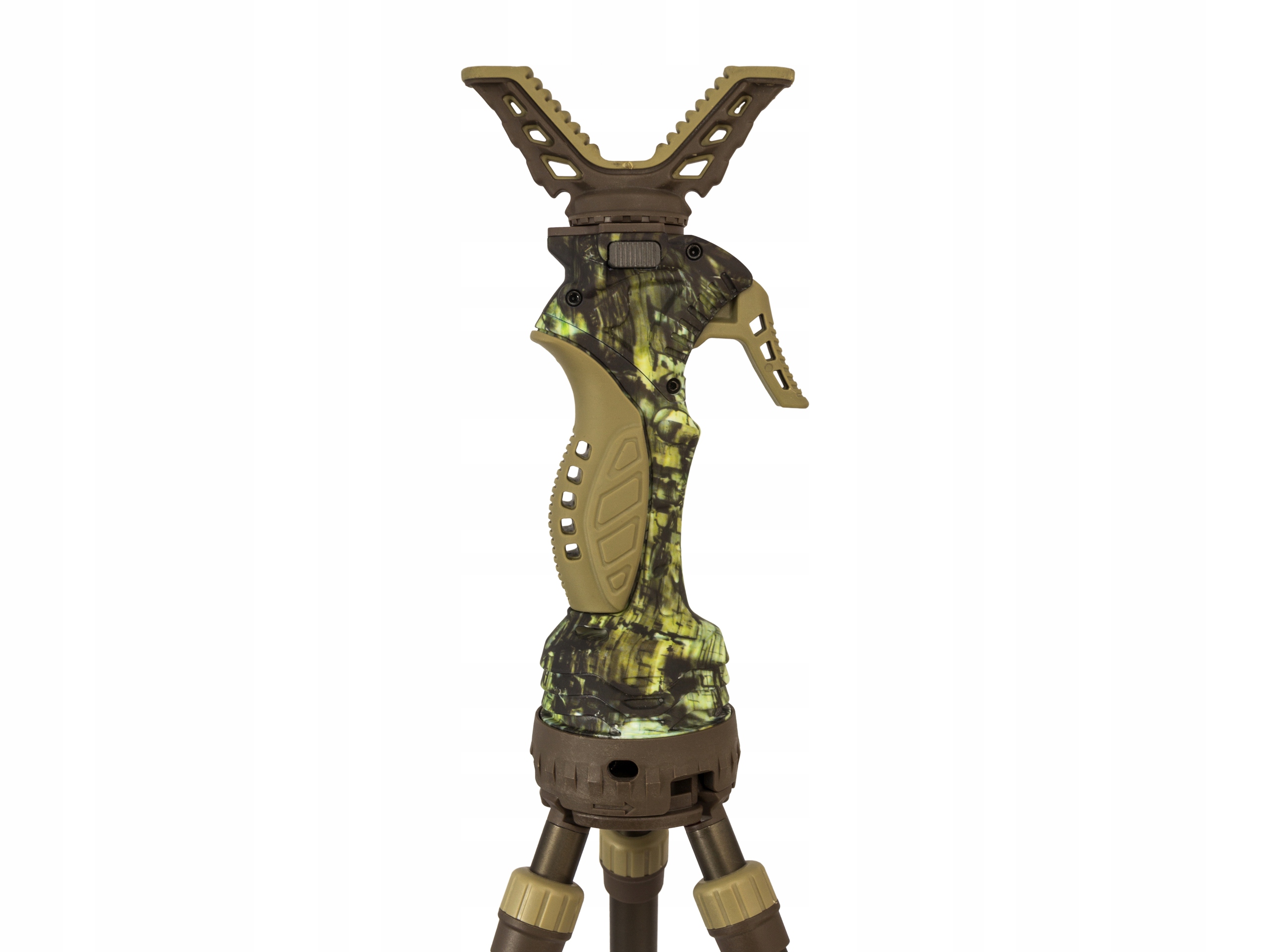 Самым большим преимуществом пасторалей Primos Trigger Stick является автоматическое (гравитационное) разведение ножек и простота регулировки. Фактически вы можете установить высоту одной рукой, не отрывая глаз от игры, к которой собираетесь приблизиться. Резиновые концы ножек с восемью пальцами специальной формы обеспечивают стабильное и надежное позиционирование посоха как на твердой, так и на грязной почве, ограничивая риск падения или скольжения. Независимое выдвижение каждой ноги (касается двух- и трехногих моделей) особенно полезно на неровной местности. После нажатия на спусковой крючок каждая нога автоматически выдвигается до тех пор, пока не коснется земли, а отпускание спускового крючка фиксирует ее на соответствующей высоте. Таким образом, ножки могут быть разной высоты, благодаря чему пастор стоит идеально вертикально и устойчиво поддерживает оружие в любых условиях.