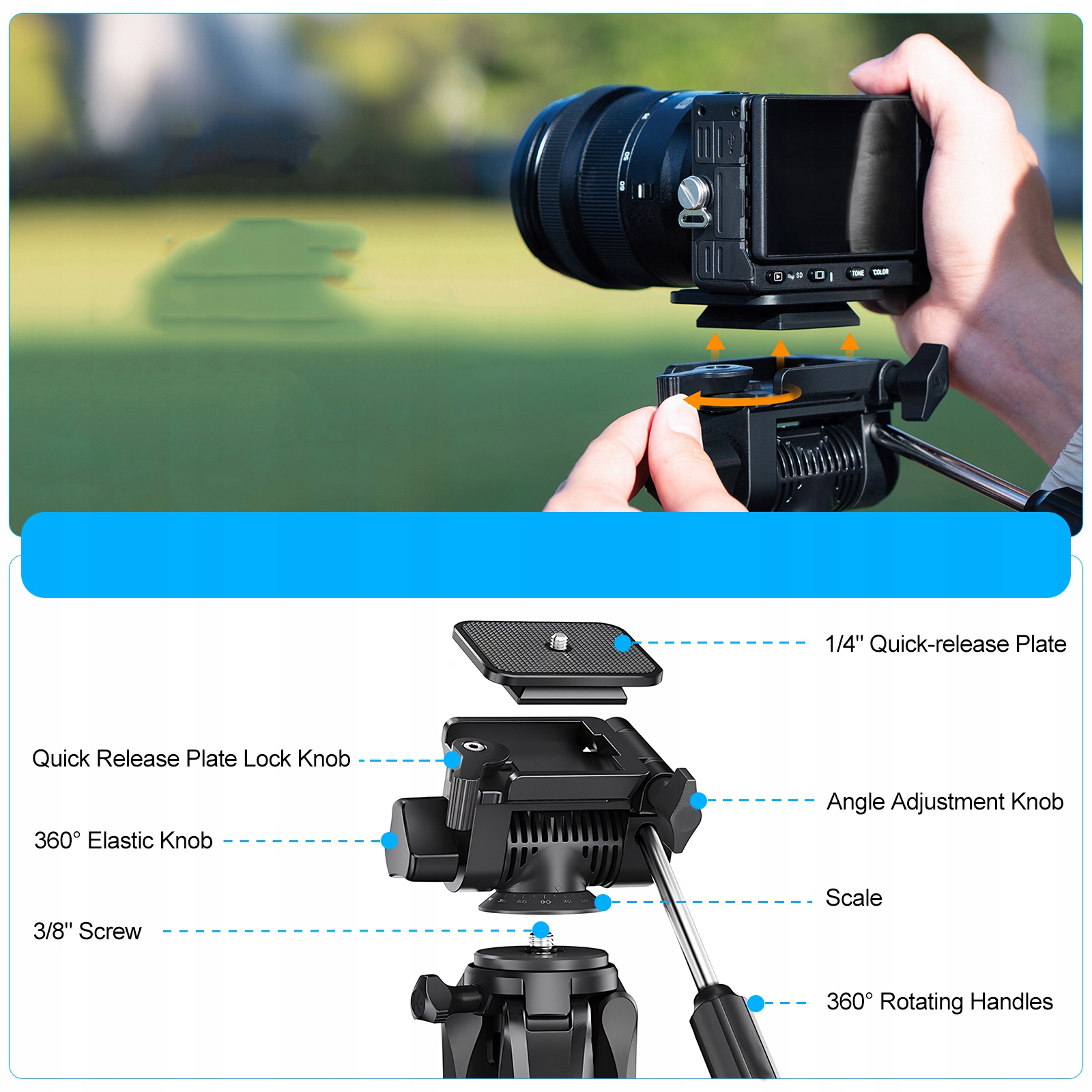 ✅Съемный Видеоголовка: поставляется со съемной видеоголовкой для плавного панорамирования и наклона для четкой записи видео.