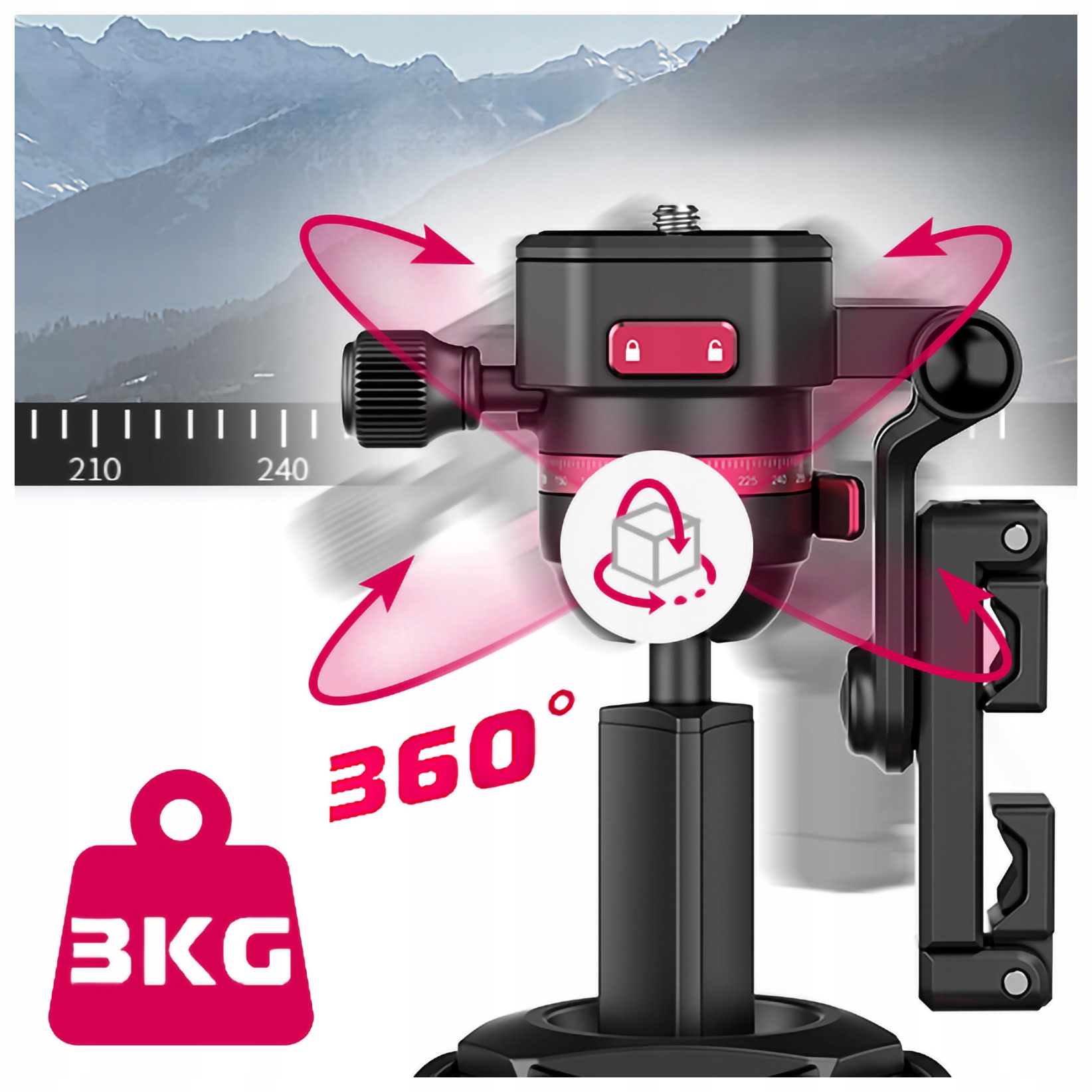 ✔️ Панорамная шаровая головка — шкала на 360 ° обеспечивает плавное и точное позиционирование камеры.