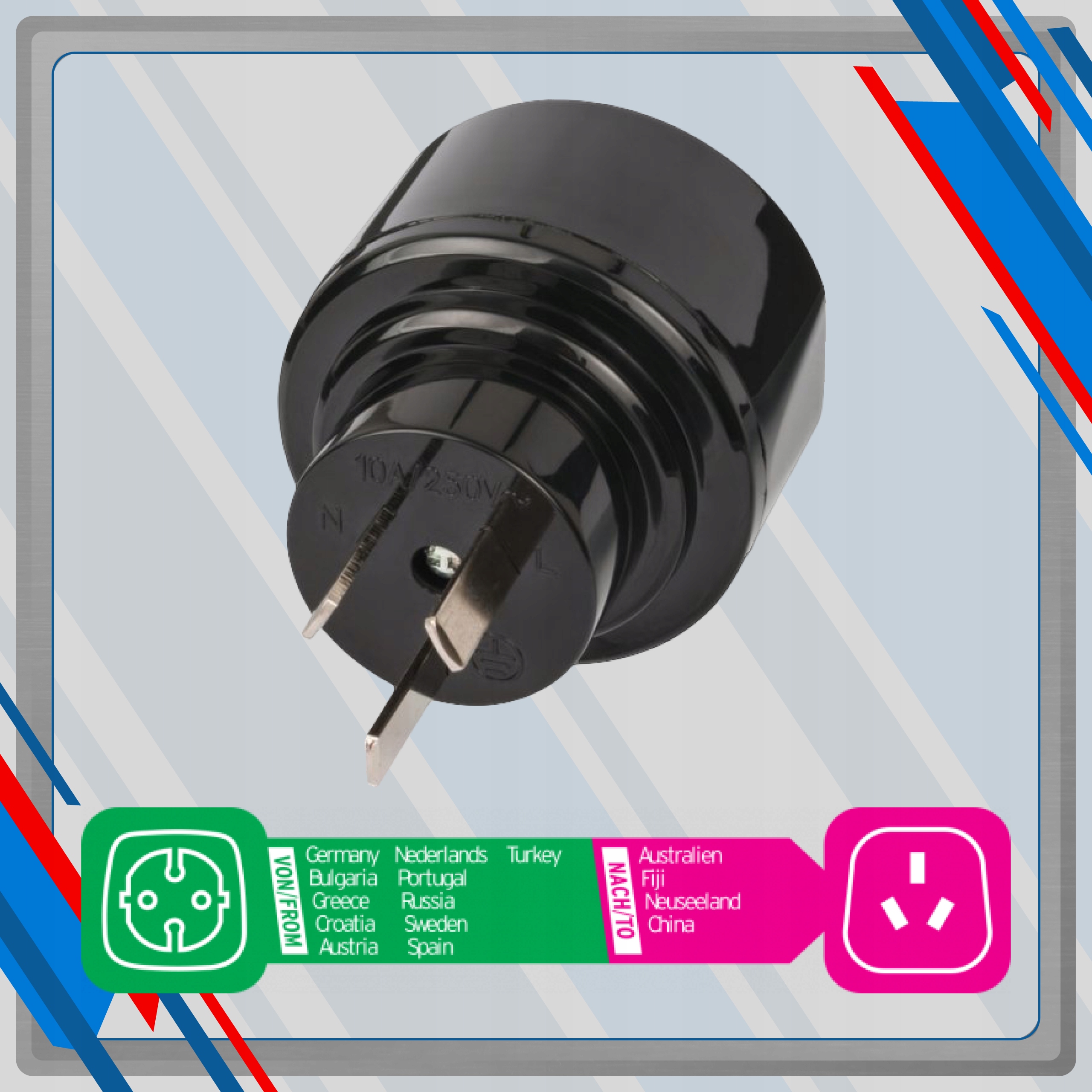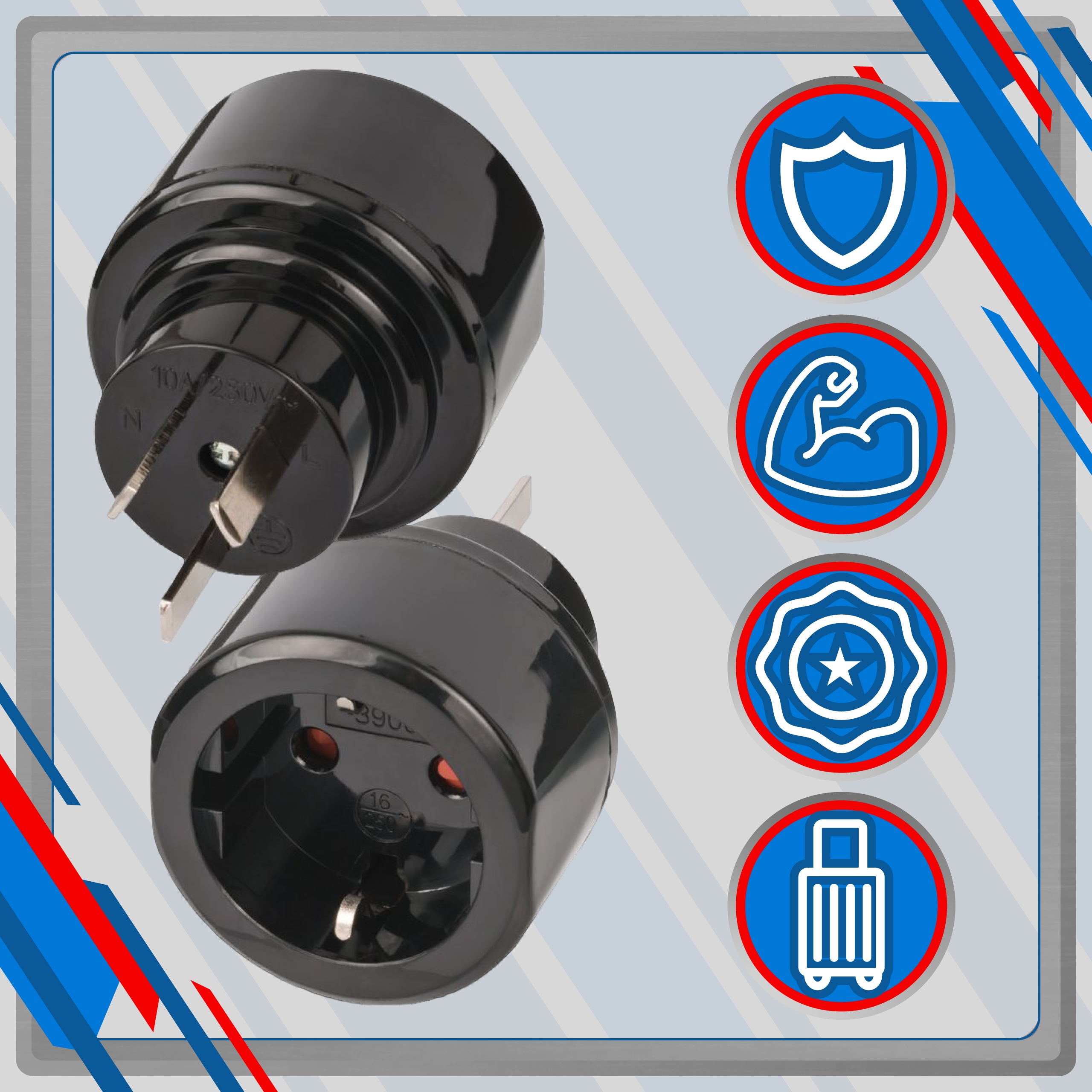 ✅ позволяет заряжать электрические устройства на территории Австралия и Китай