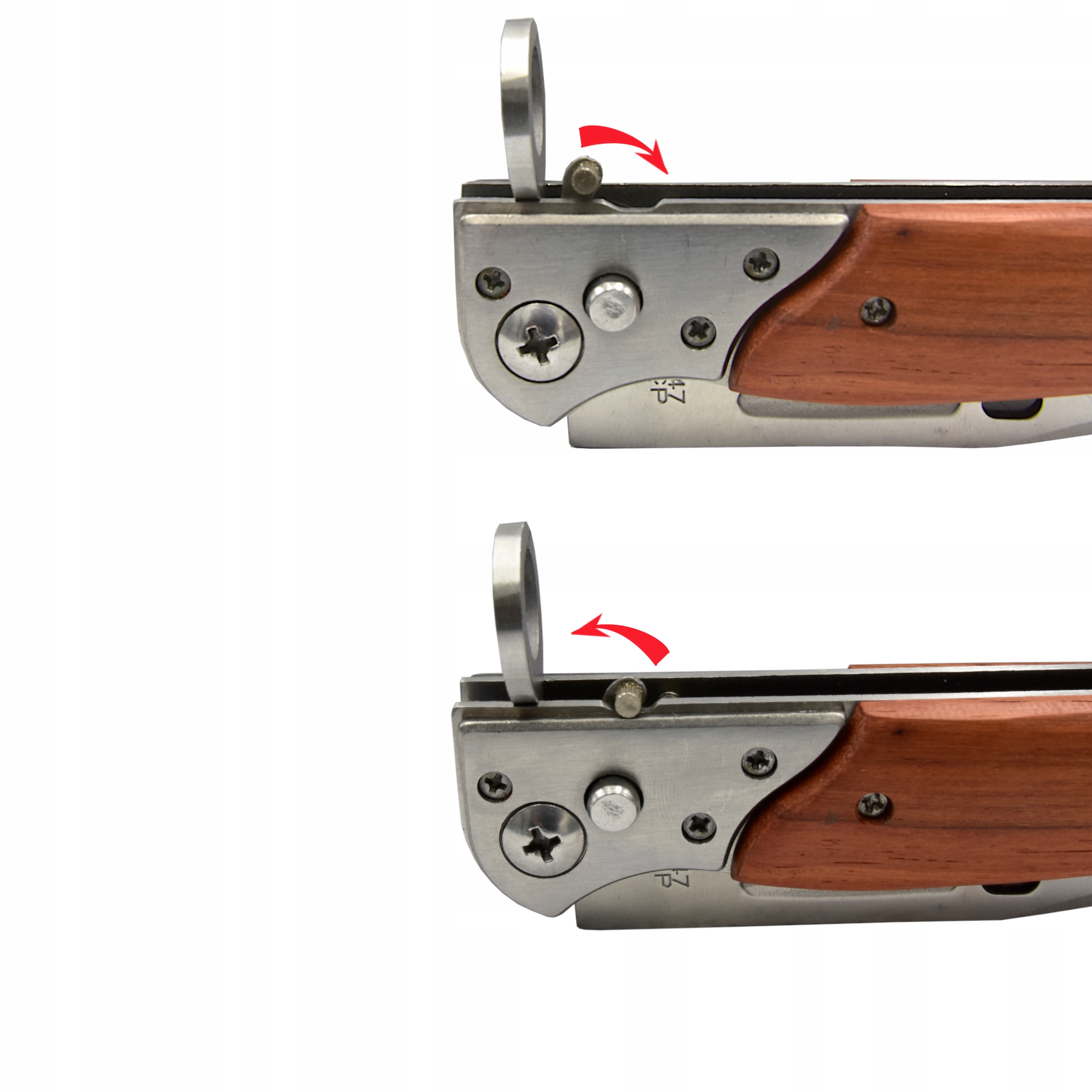 Штык имеет «предохранитель», т.е. дополнительный фиксатор в виде рычага, предотвращающий случайное открытие ножа.
