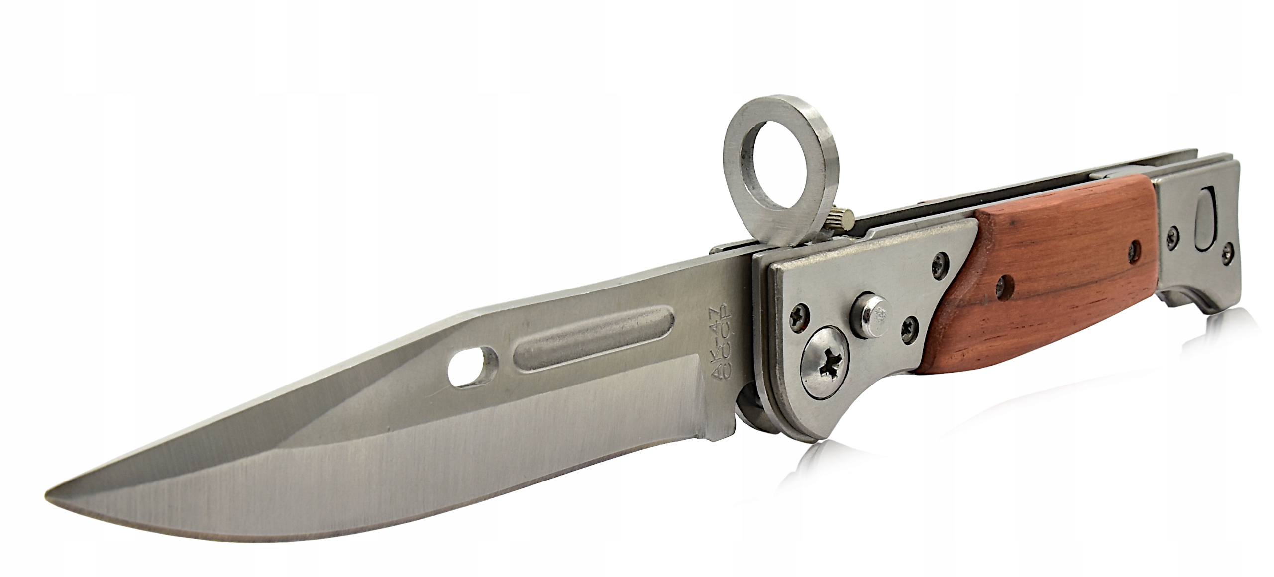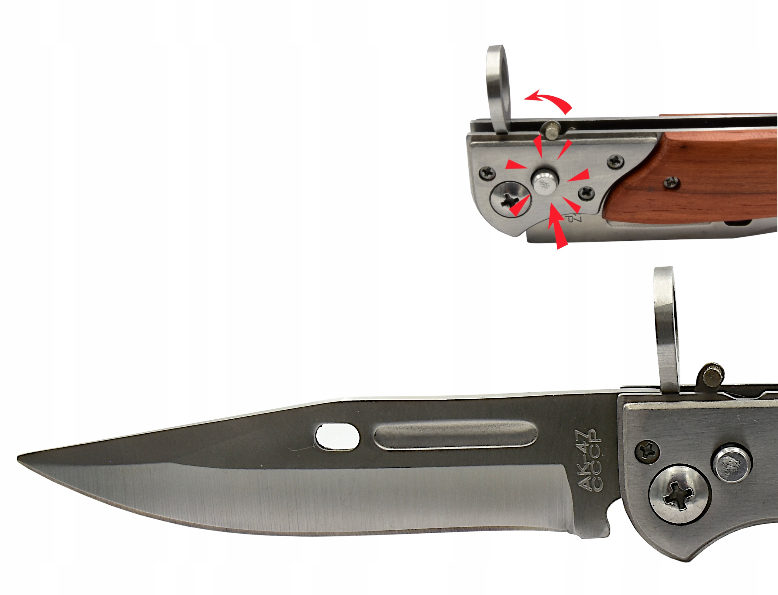 АК-47 — полностью подпружиненный нож, который можно только открывать и закрывать с помощью кнопки. Штык имеет «предохранитель», т.е. дополнительный фиксатор в виде рычага, предотвращающий случайное раскрытие ножа. Ножом можно успешно пользоваться.