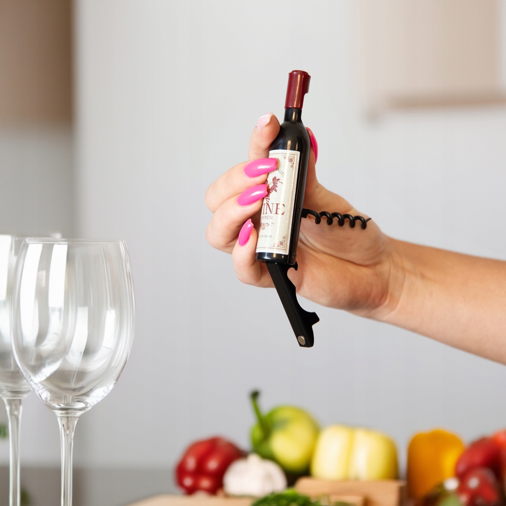 Штопор для вина в форме бутылки — элегантный и функциональный инструмент, который должен быть в каждом кухня или бар. Изготовленный из высококачественных материалов, он сочетает в себе стильный дизайн и практичность, обеспечивая легкое открытие бутылок вина и других напитков. Его уникальная форма делает его не только полезным, но и эстетичным.