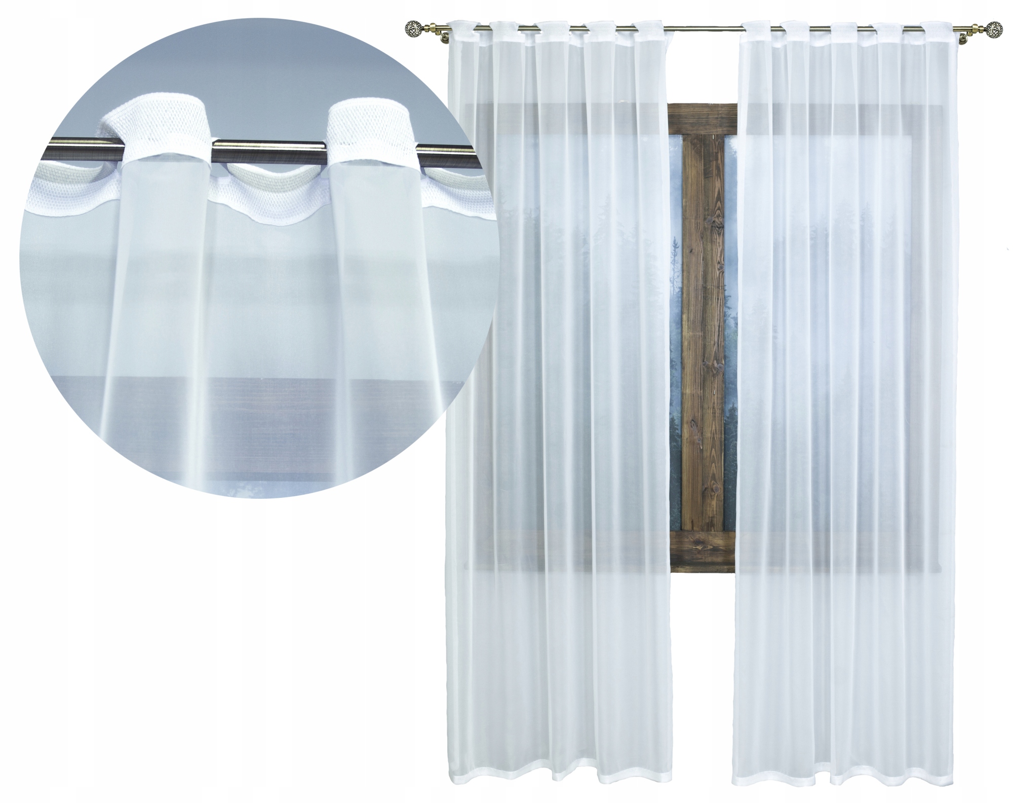 Штора из вуали 1-го качества на жаккардовой ленте с отверстиями.
