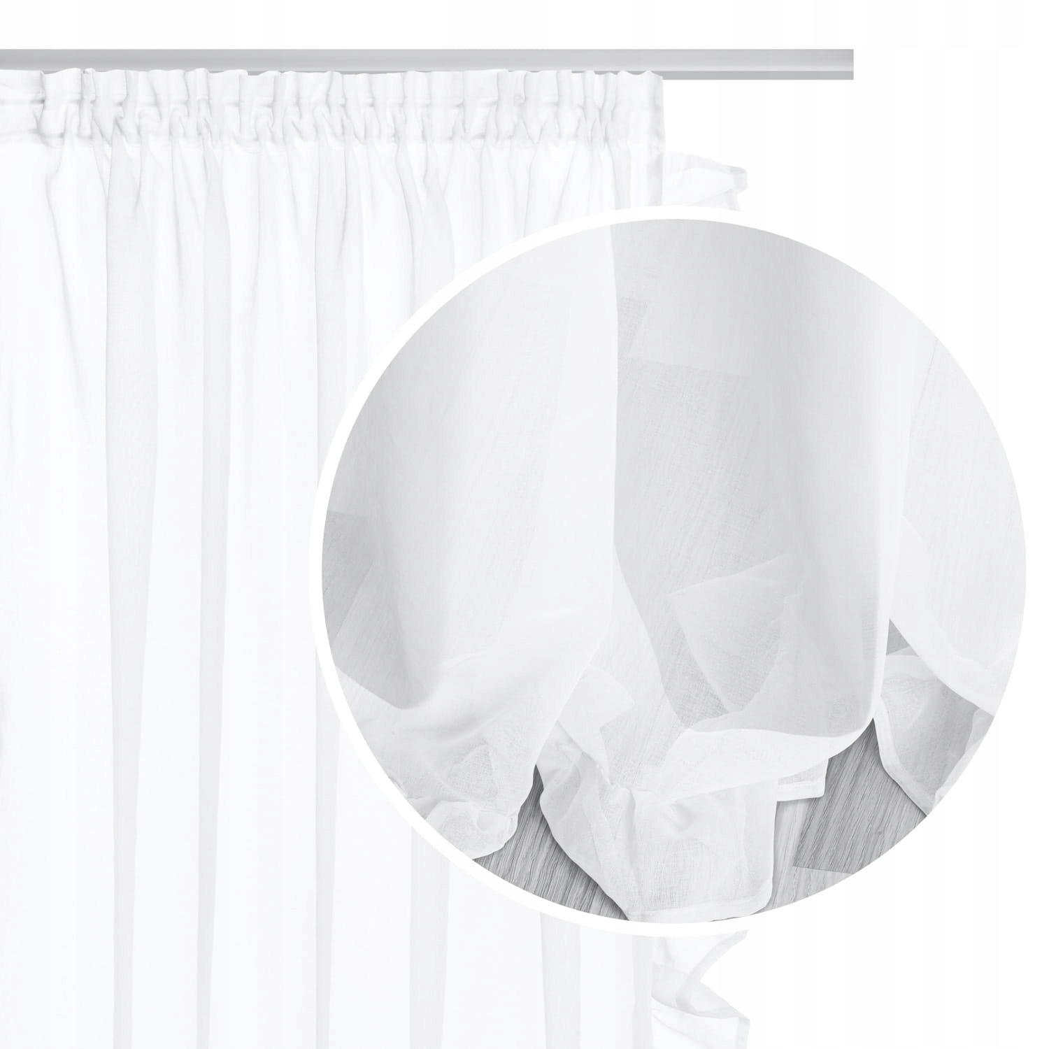 Штора для гостиной имеет универсальный размер 140x250 см, который подойдет к большинству интерьеров. Он элегантный и, несомненно, добавит очарования вашей гостиной. Он изготовлен из полиэфирной ткани этамин, слегка прозрачной, слегка шероховатой на ощупь и слегка блестящей. Она отделана подзором, что добавляет шарма и неповторимости.