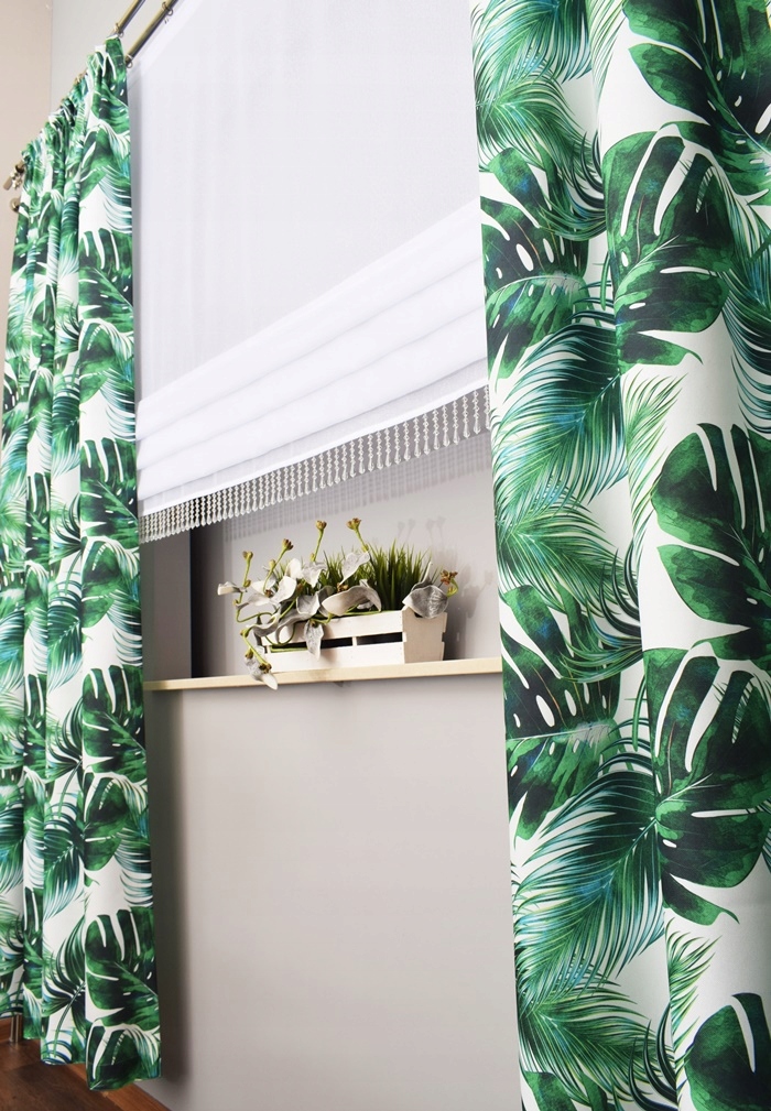 - Предмет продажи - портьерная ткань из листьев монстеры.