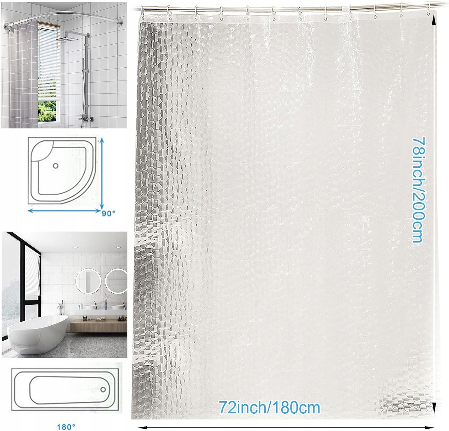 ✔ Храните элегантный прозрачный 3D -эффект: прозрачная занавеска для душа защищает вашу конфиденциальность благодаря 3D -эффекту. Войдите в зону ванны, но вы не можете увидеть детали зоны ванны, у нее есть осторожная красота. Толщина и идеальная натуральная драпировка, благодаря которой занавеска для душа не плавает и не прикрепляется к телу во время купания, подходит для душевых и сумок. Семейные квартиры, общежития, отели, спортивные залы и клубы.